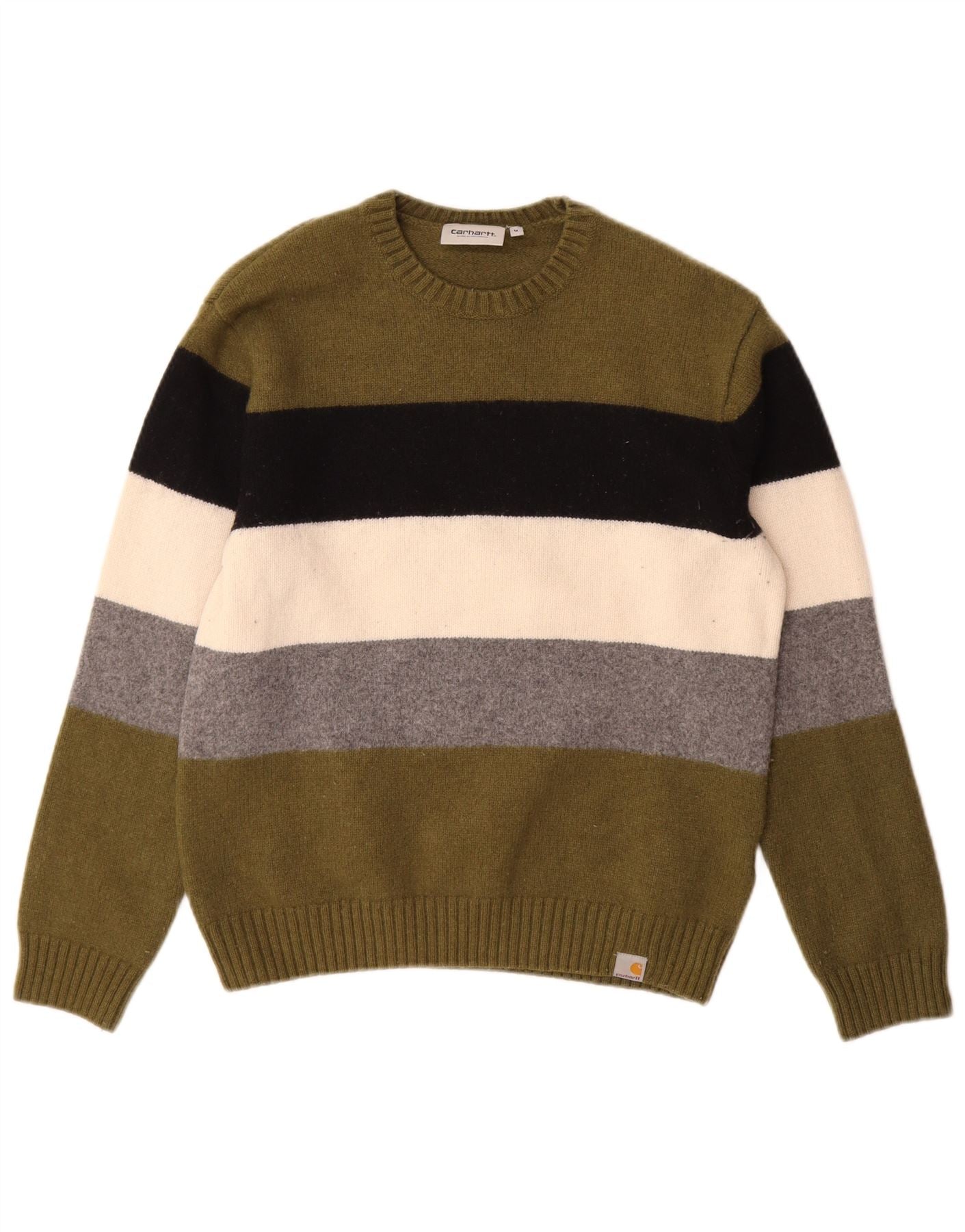 Home > Îmbrăcăminte Carhartt de epocă > a bărbaţilor > Pulover pentru bărbați CARHARTT cu gâtul turnat, lână de miel cu dungi kaki mediu