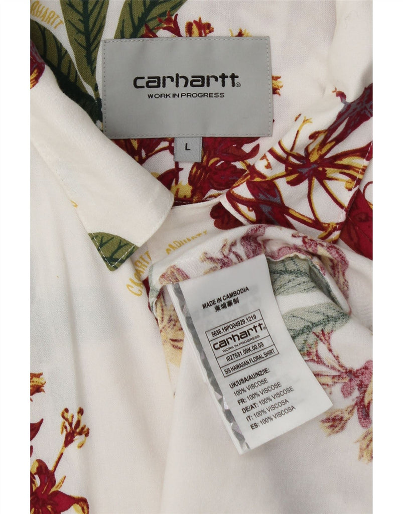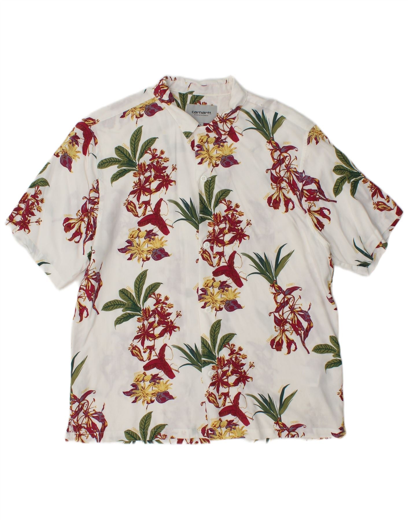 Cămașă hawaiană pentru bărbați CARHARTT cu mânecă scurtă, mare, albă, cu viscoză florală