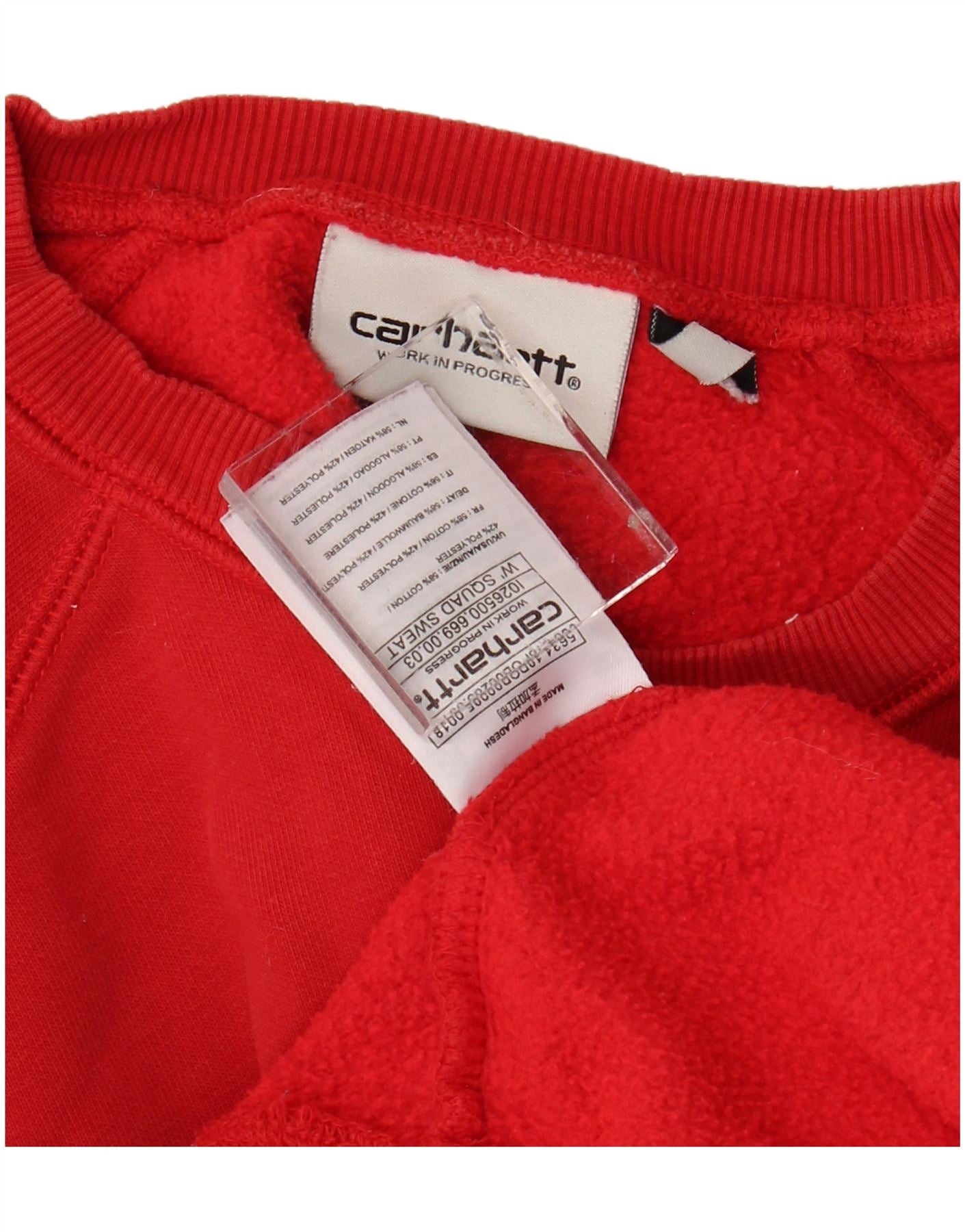 - AI Description: This Carhartt mens sweatshirt jumper is crafted from a comfortable cotton blend fabric. Its rich red hue offers a classic, versatile look. The round neck and long sleeves provide a timeless silhouette. A pullover design ensures easy wear. The regular fit offers everyday comfort and a relaxed feel. A subtle logo detail adds a signature touch.
