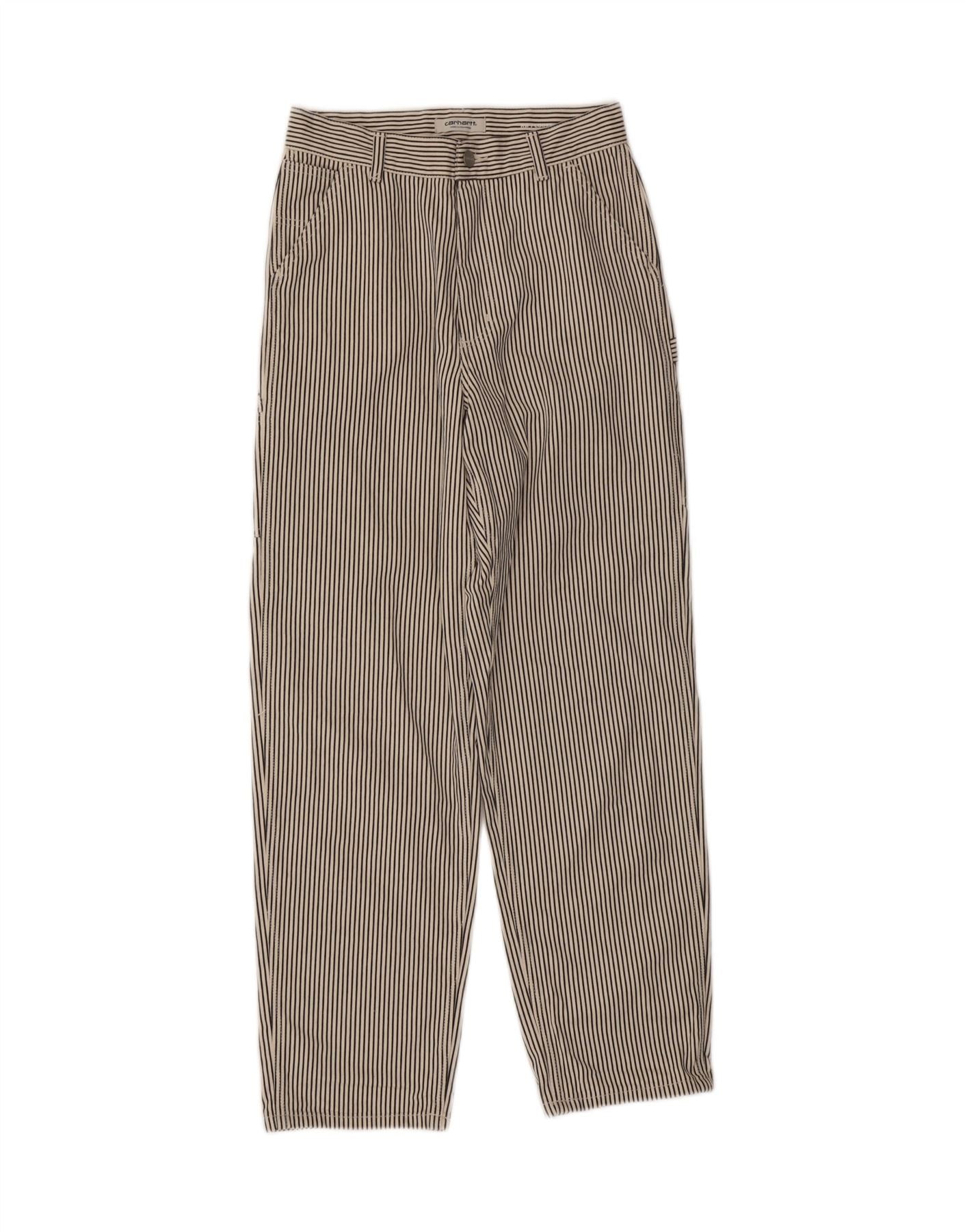 CARHARTT Womens Tapered Cargo Trousers W24 L29 Black Pinstripe Cotton