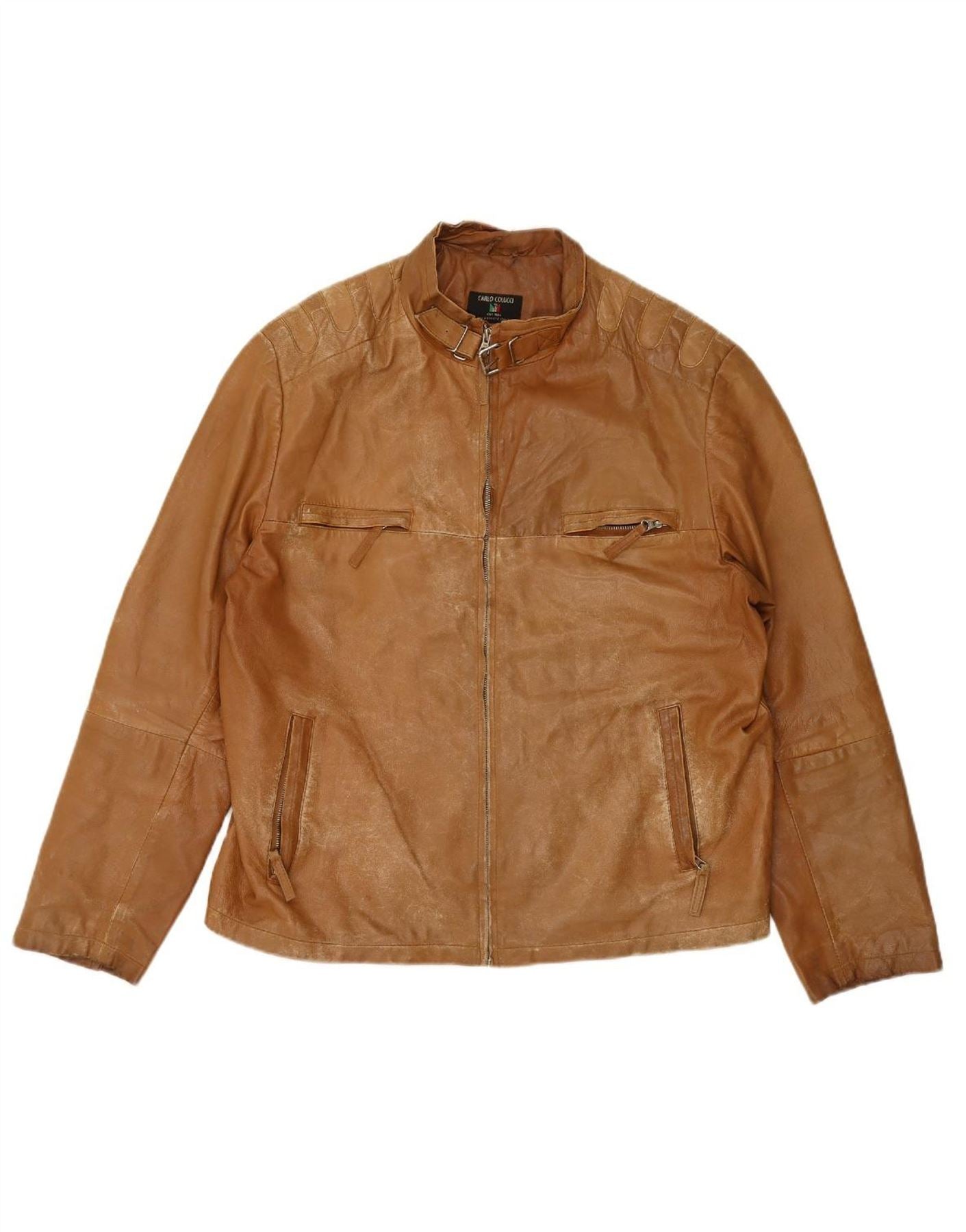 CARLO COLUCCI Mens Leather Jacket IT 54 2XL Brown Leather