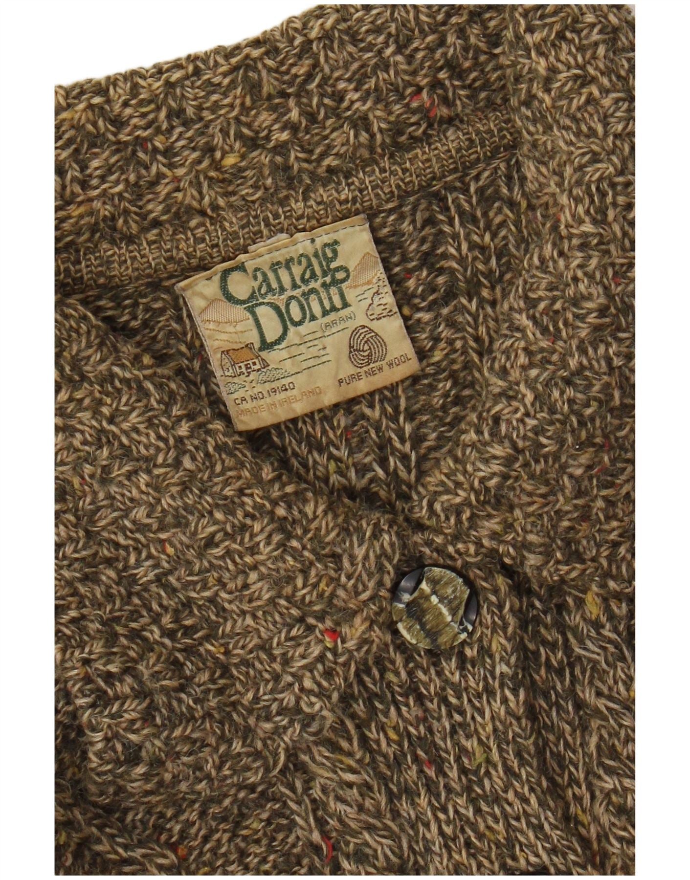 CARRAIG DONN Womens Cardigan Sweater UK 14 Medium Khaki Flecked Wool