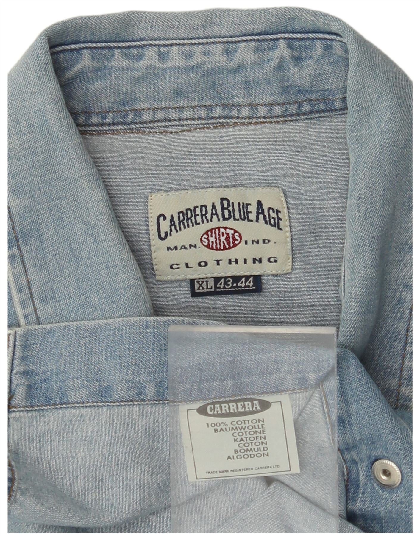 Cămașă din denim fără mâneci pentru bărbați CARRERA Mărimea 43/44 XL Bumbac albastru