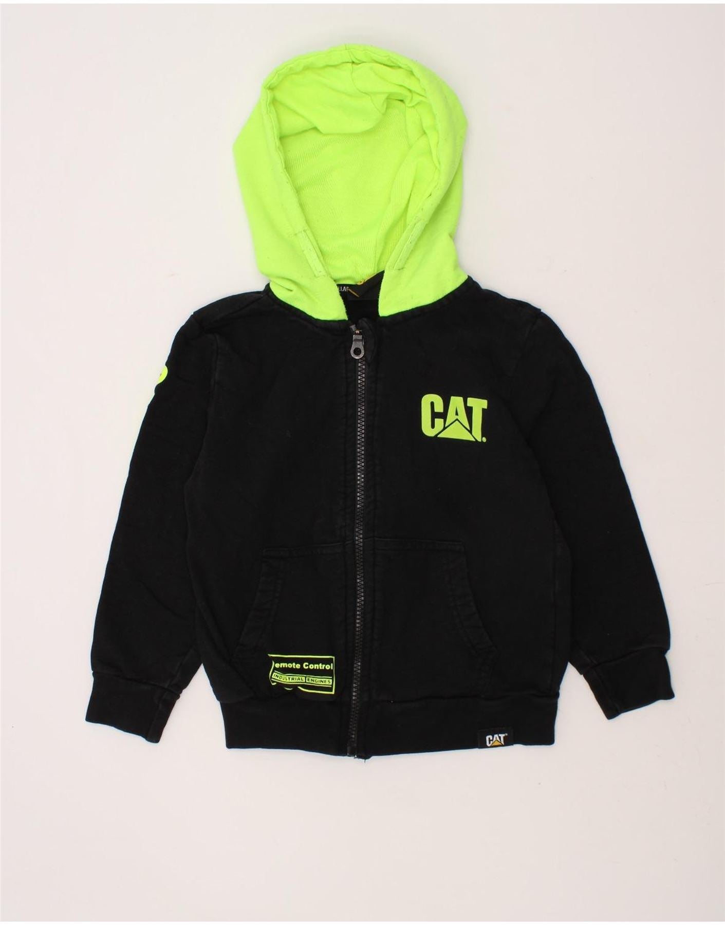 CATERPILLAR Boys Graphic Zip Hoodie Sweater 3-4 Years Black Colourblock