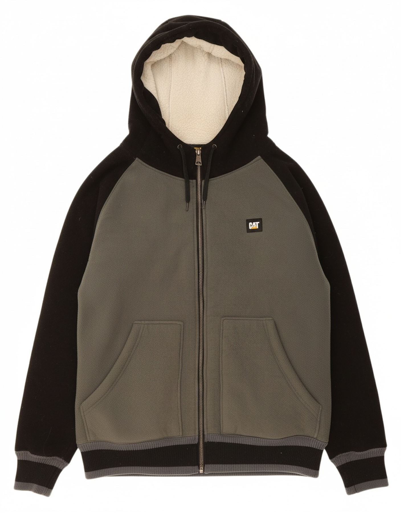 CATERPILLAR Mens Graphic Fleece Jacket UK 36 Small Black Colourblock