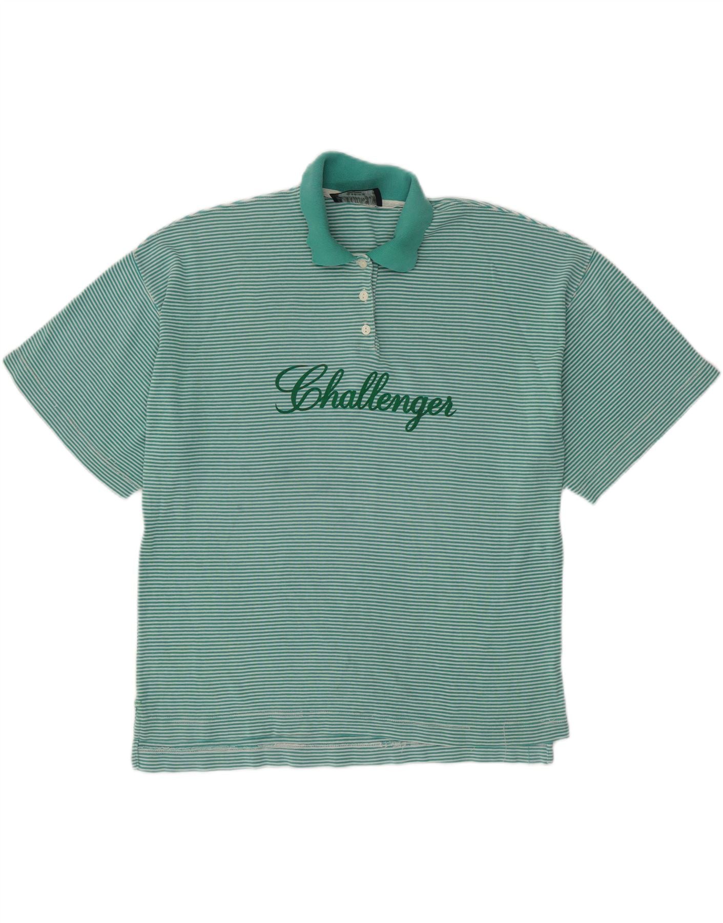 CHALLENGER Tricou polo supradimensionat pentru femei UK 14 Medium Turcoaz Pinstripe
