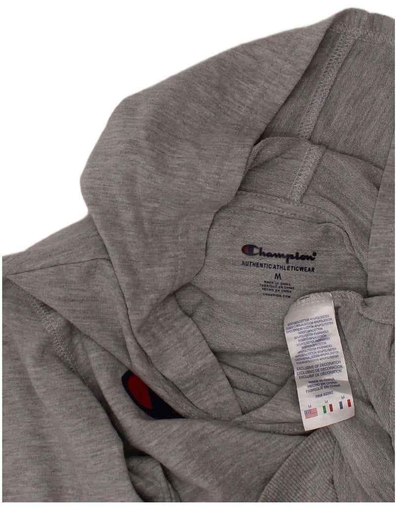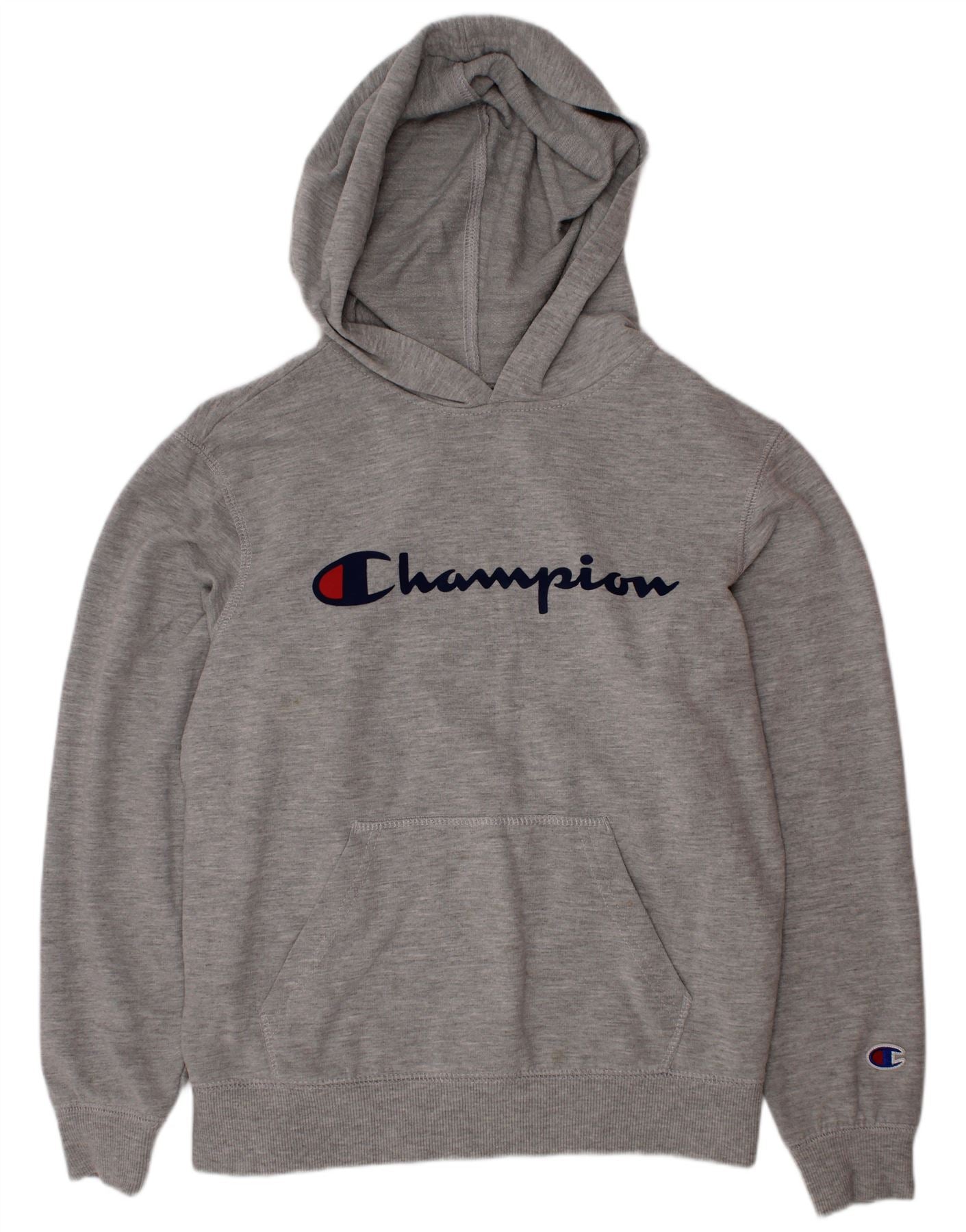 Pulover cu glugă cu grafic CHAMPION pentru băieți 9-10 ani, bumbac cu pete, gri mediu