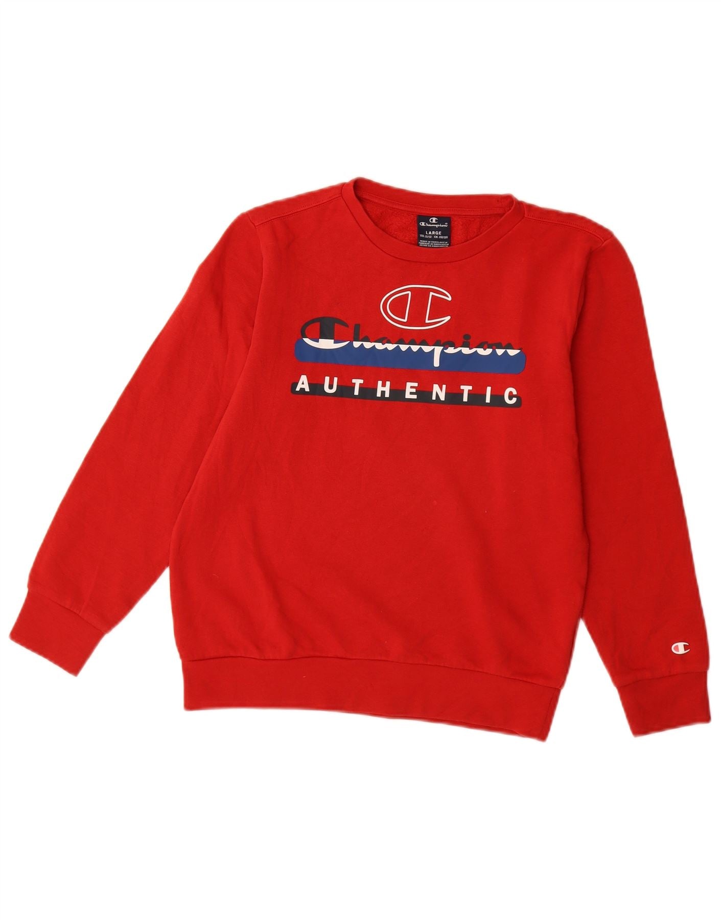 CHAMPION Boys Graphic Sweatshirt Jumper 11-12 Years Large Red Cotton
