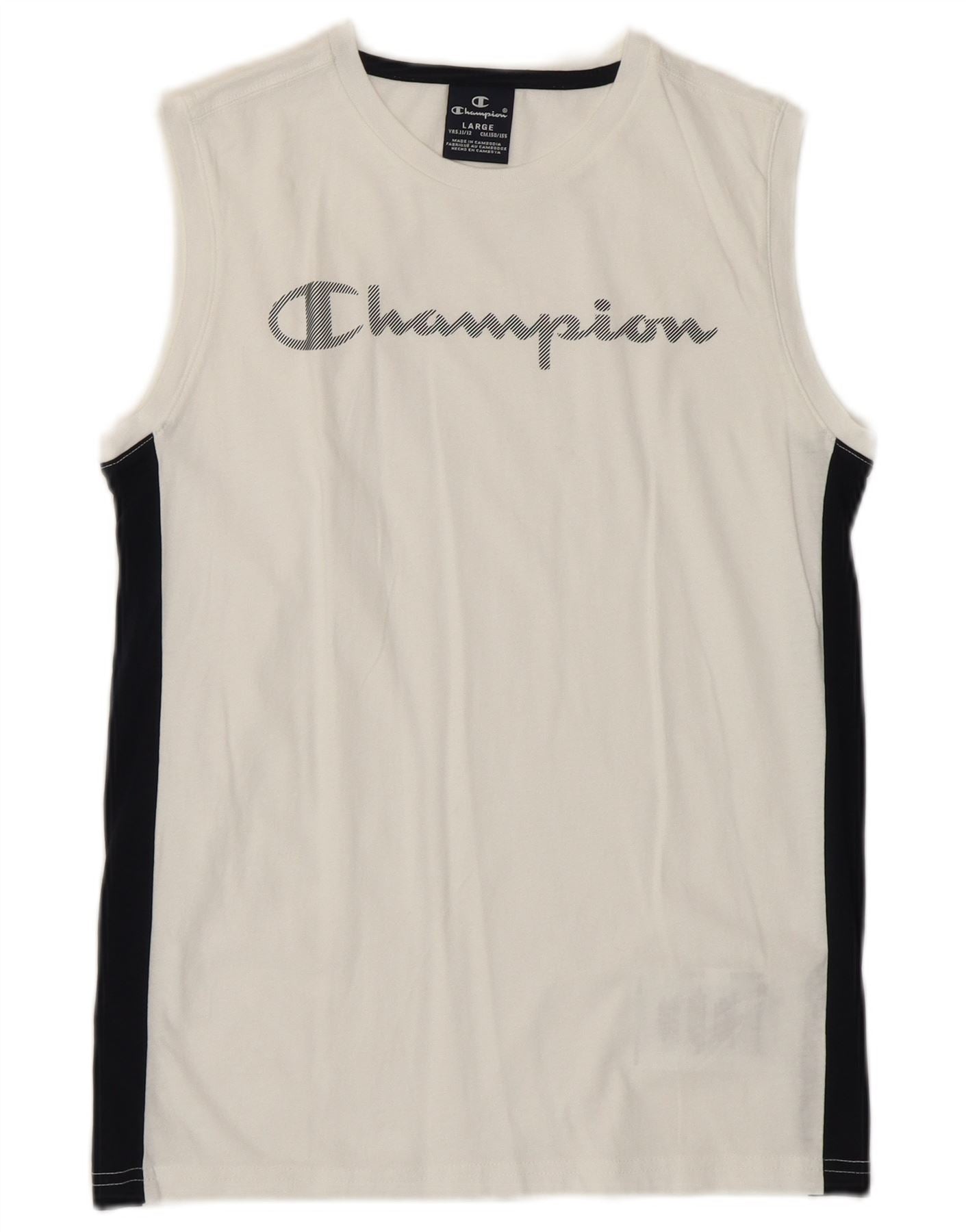 Vestă cu grafică Champion Boys Top 11-12 ani, mare, alb, color block Sport