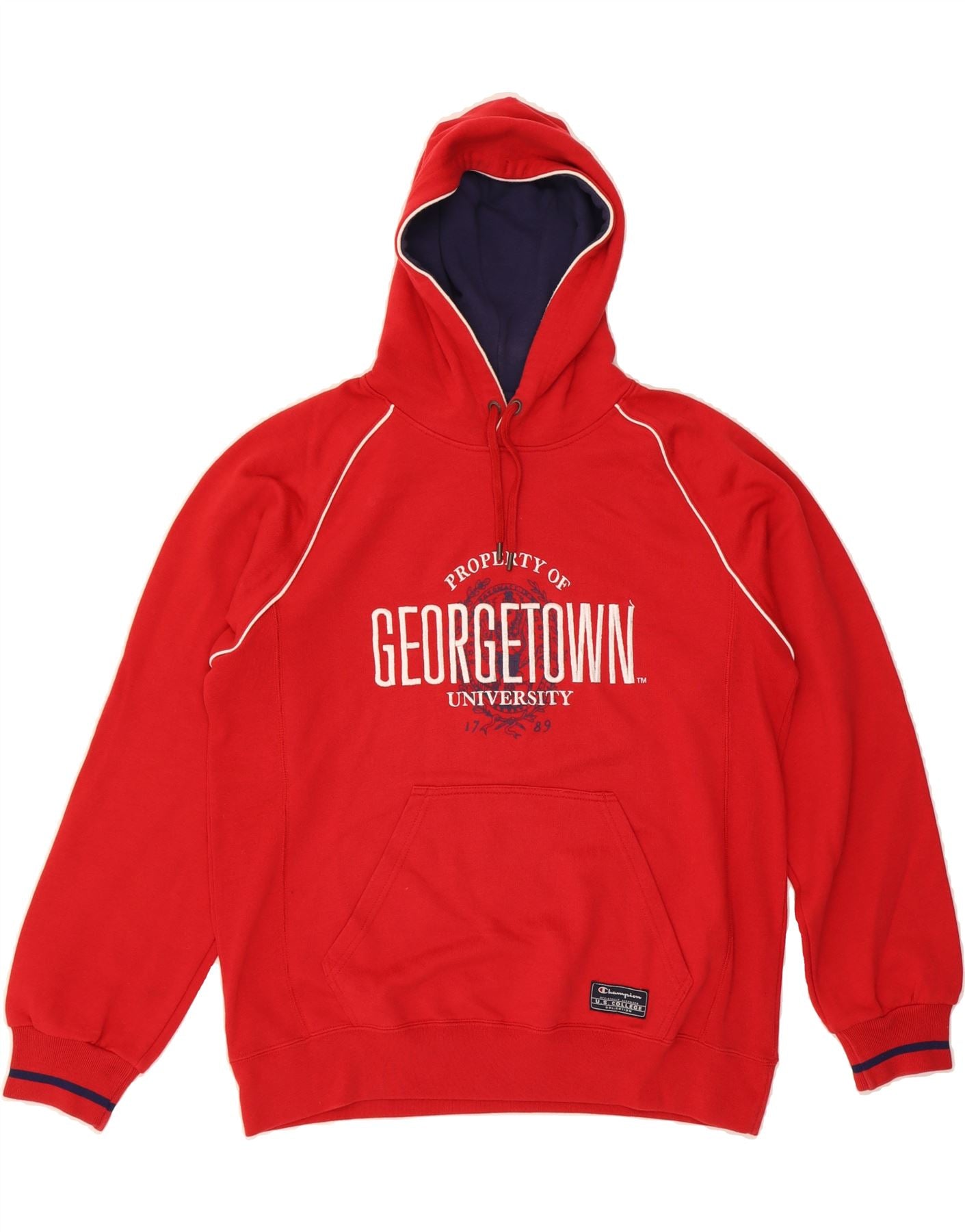 CHAMPION Mens Georgetown University Graphic Hoodie Jumper Large Red Cotton