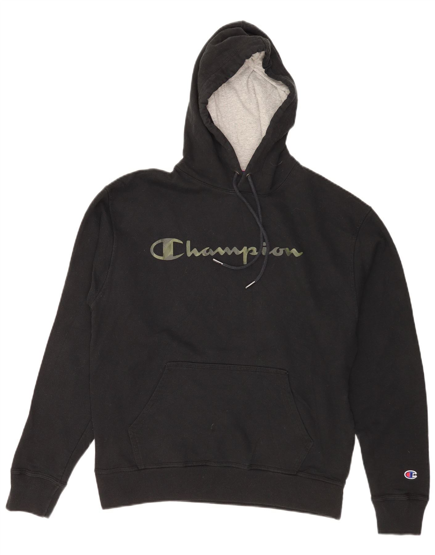 Home > Îmbrăcăminte Vintage Champion > a bărbaţilor > Hanorac cu gluga > Pulover cu glugă grafic Champion pentru bărbați, bumbac mediu negru