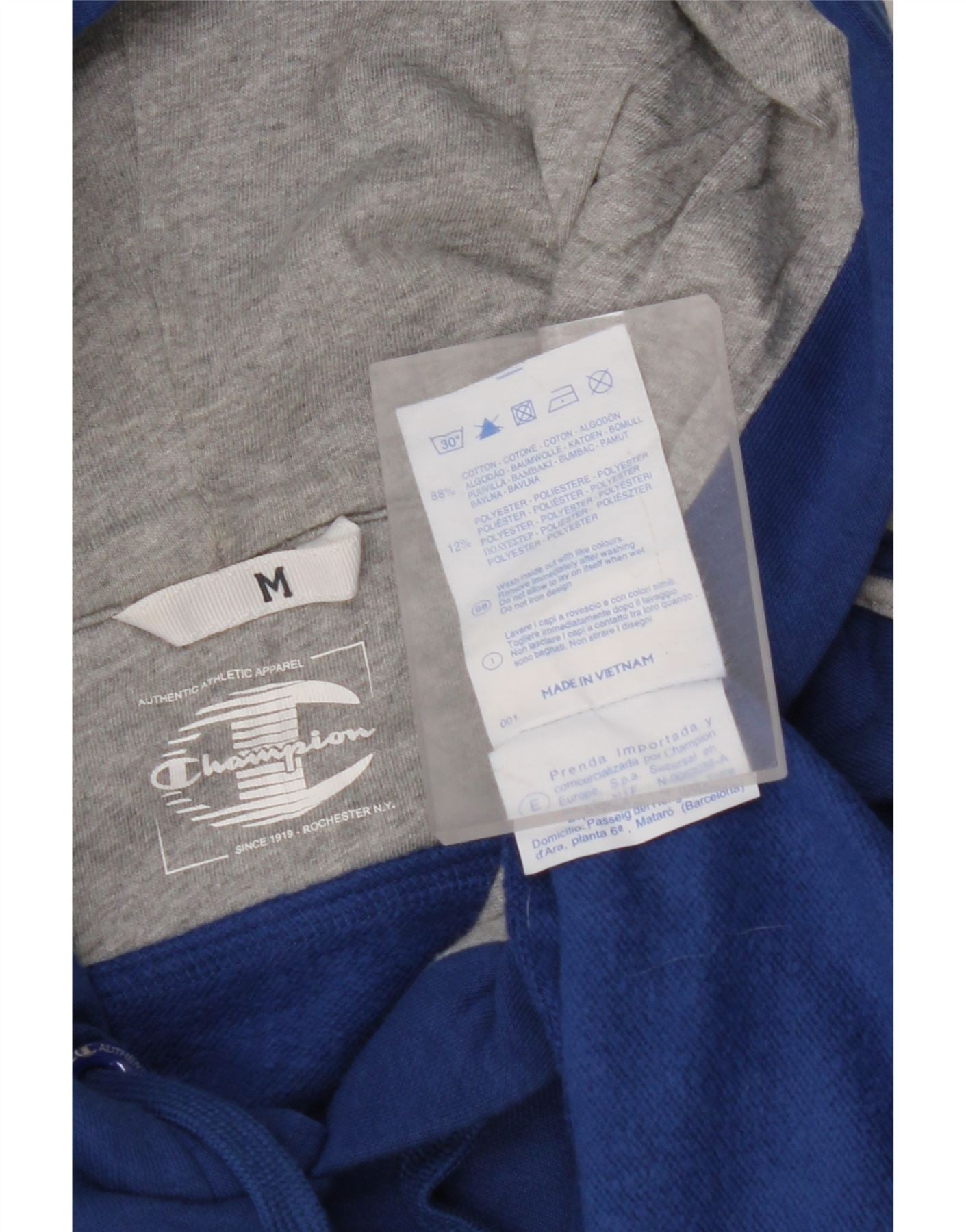 Home > Îmbrăcăminte Vintage Champion > a bărbaţilor > Hanorac cu gluga > Pulover cu glugă cu grafică pentru bărbați CHAMPION, bumbac albastru mediu