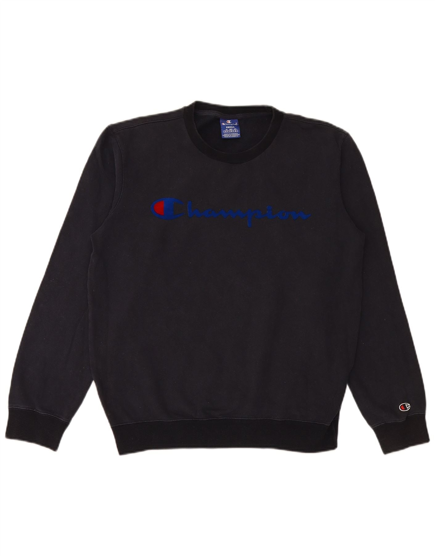 CHAMPION Mens Graphic Sweatshirt Jumper Small Navy Blue Cotton