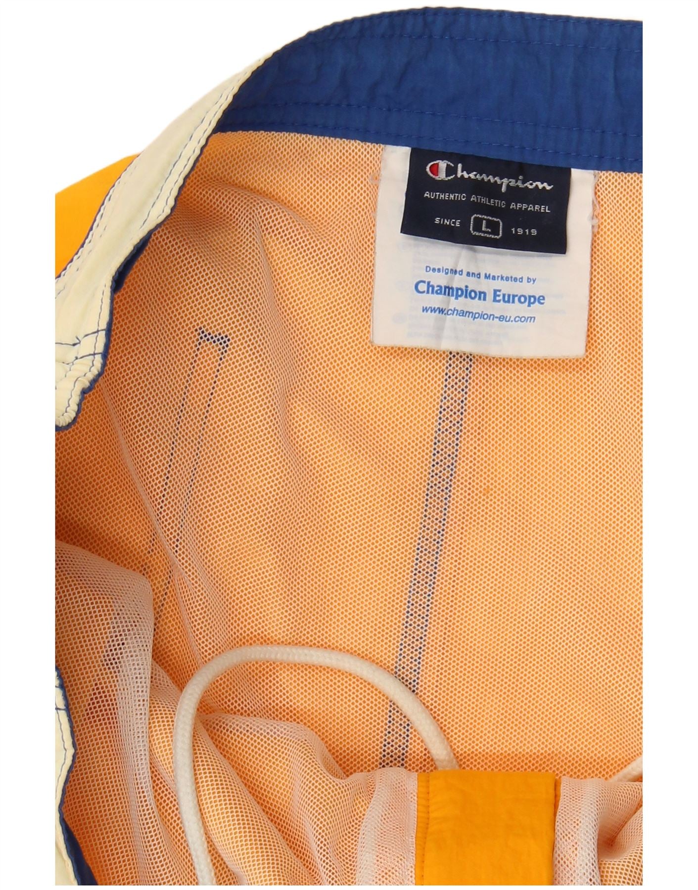- Descriere AI: Acesti pantaloni scurți de înot pentru bărbați Champion sunt confecționați din țesătură ușoară portocalie. Au o talie elastică confortabilă, cu închidere cu șnur pentru o potrivire regulată reglabilă. Croiala dreaptă asigură o mișcare ușoară. Sunt incluse buzunare practice. Dungile laterale albe adaugă un contrast sportiv. Un logo Champion brodat apare in fata, cu un plasture pe spate.
