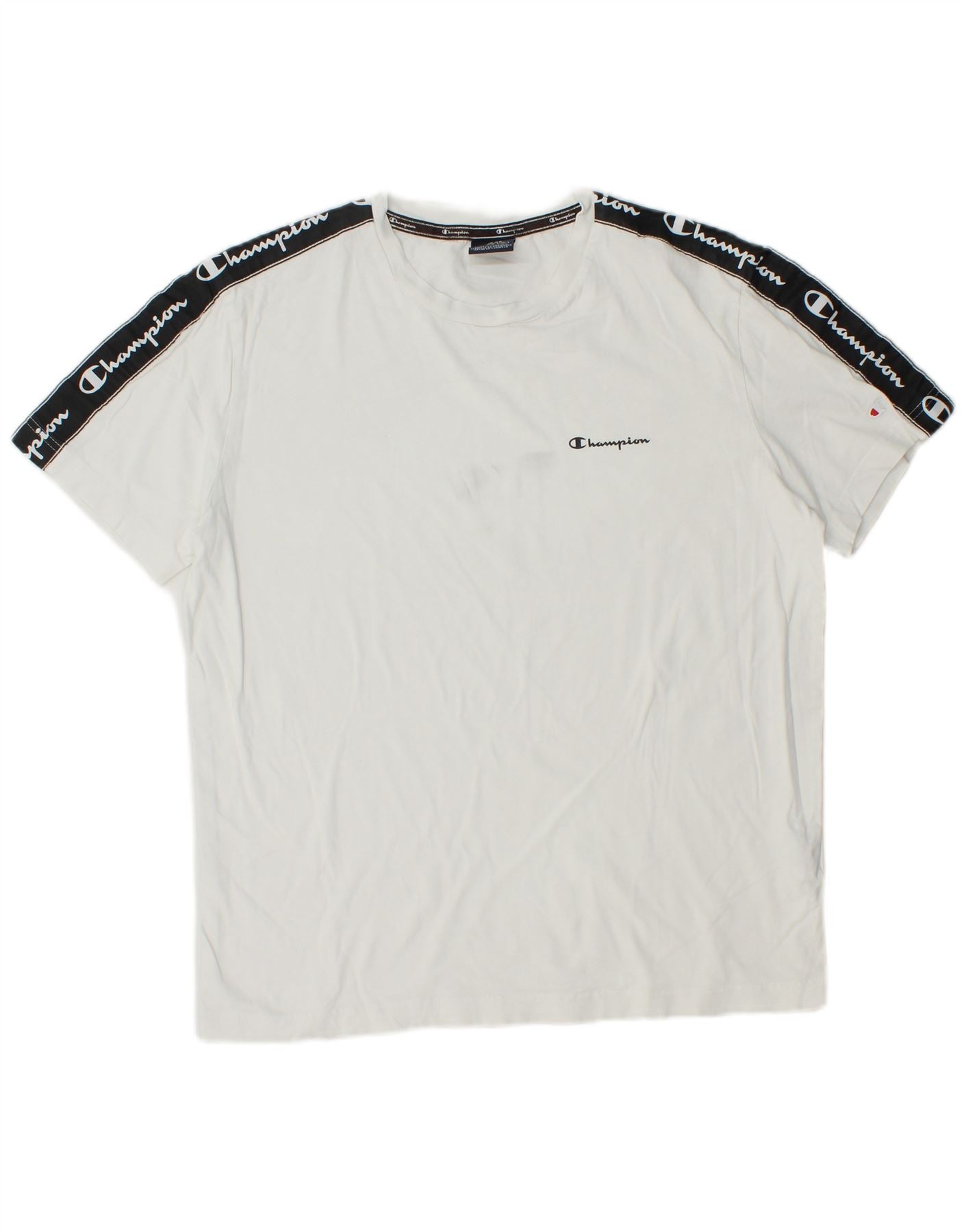 Tricou grafic pentru bărbați CHAMPION Top mare, alb, din bumbac color bloc