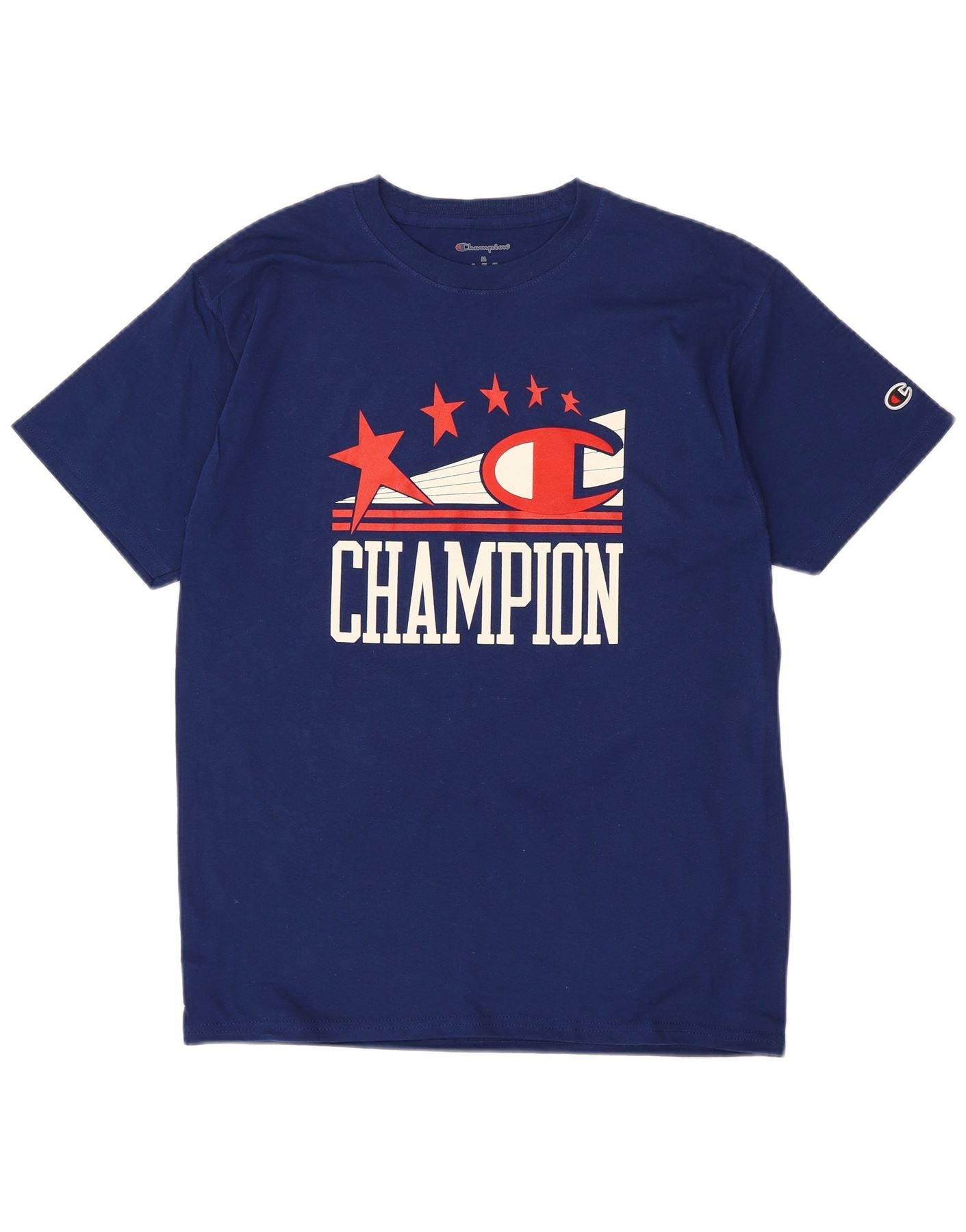 Tricou grafic pentru bărbați CHAMPION Top mediu din bumbac bleumarin