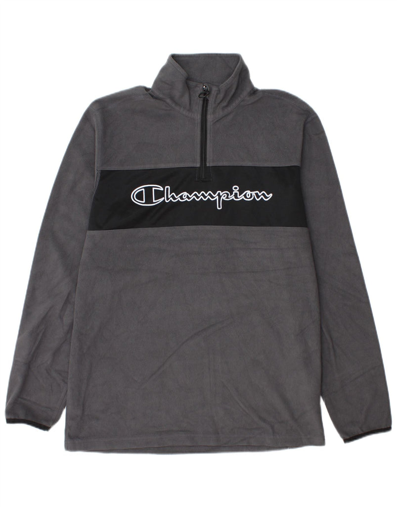 CHAMPION Mens Graphic Zip Neck Fleece Jumper XL Grey Colourblock Polyester