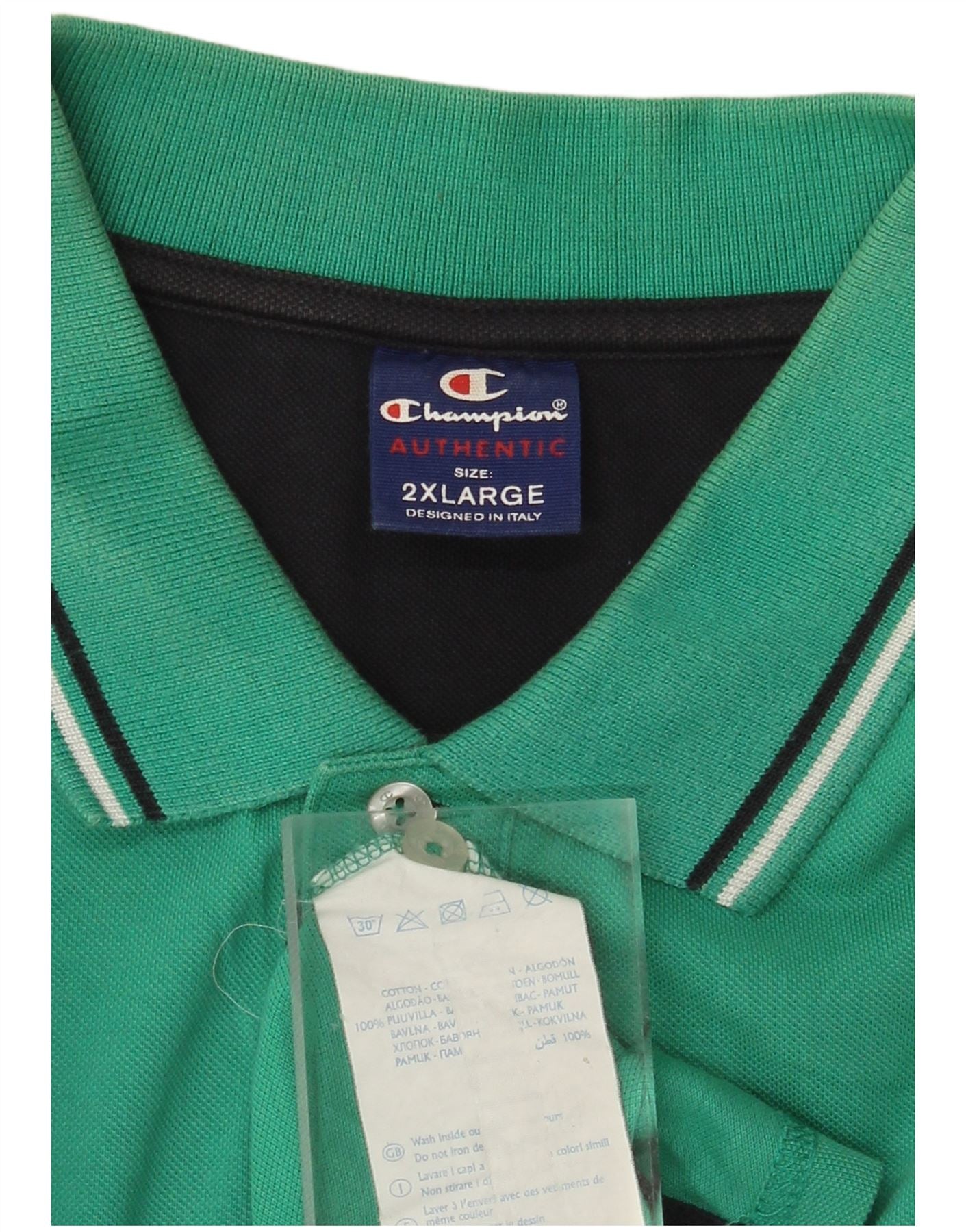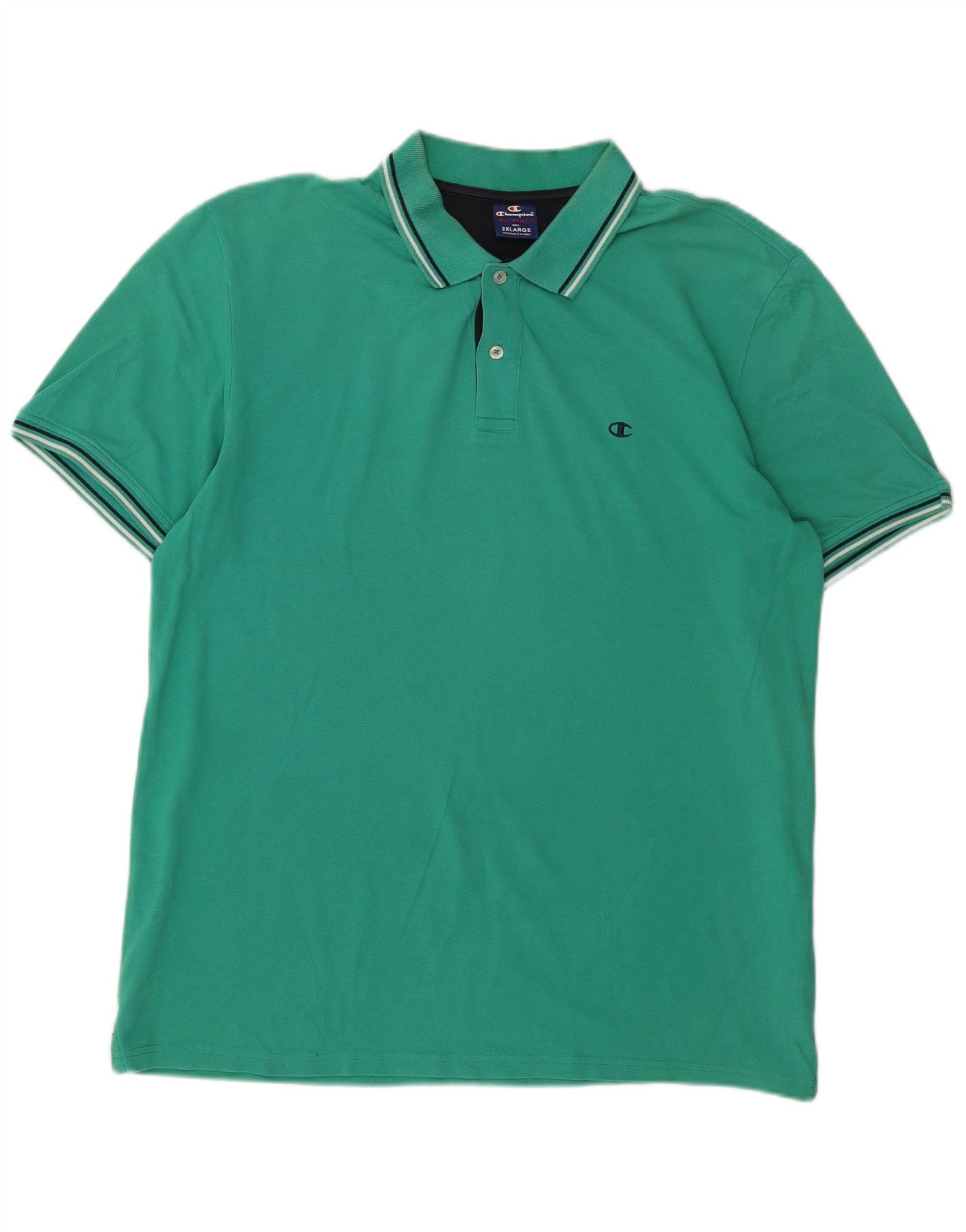 - AI Description: This Champion mens Polo Shirt is crafted from 100 percent cotton knit fabric in a vibrant green hue. It features a classic collared neckline and a button closure. Short sleeves and a regular fit ensure comfort and ease of movement. A subtle logo accent adds a signature touch. This style offers a timeless, sporty aesthetic for everyday wear.