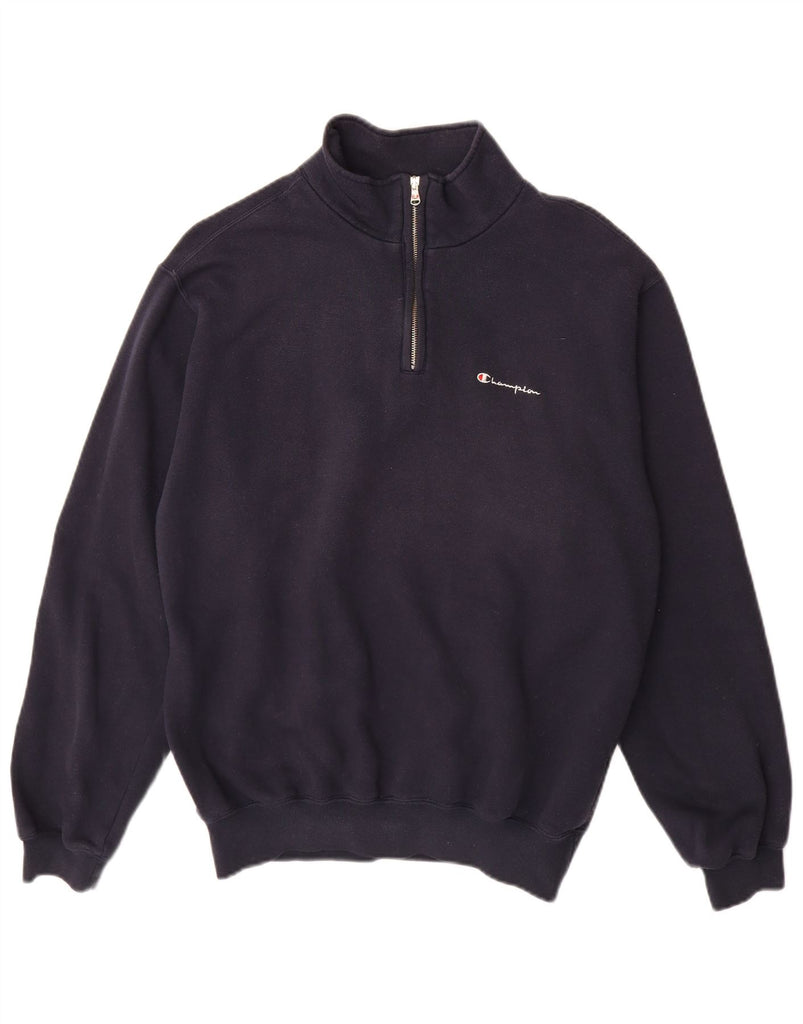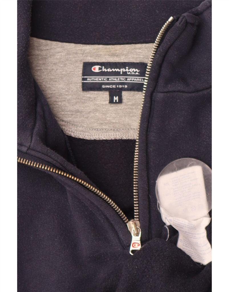 CHAMPION Mens Zip Neck Sweatshirt Jumper Medium Navy Blue Cotton