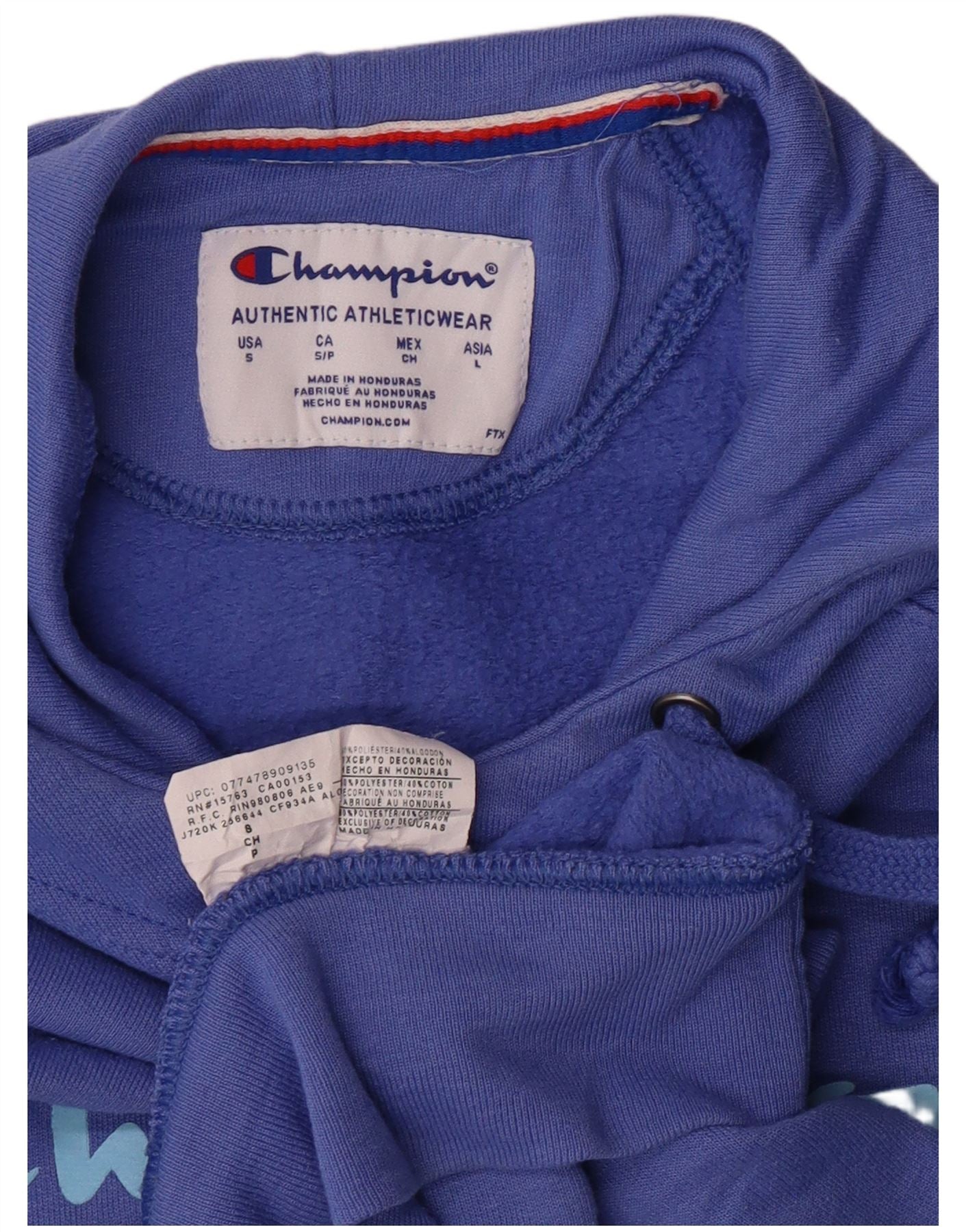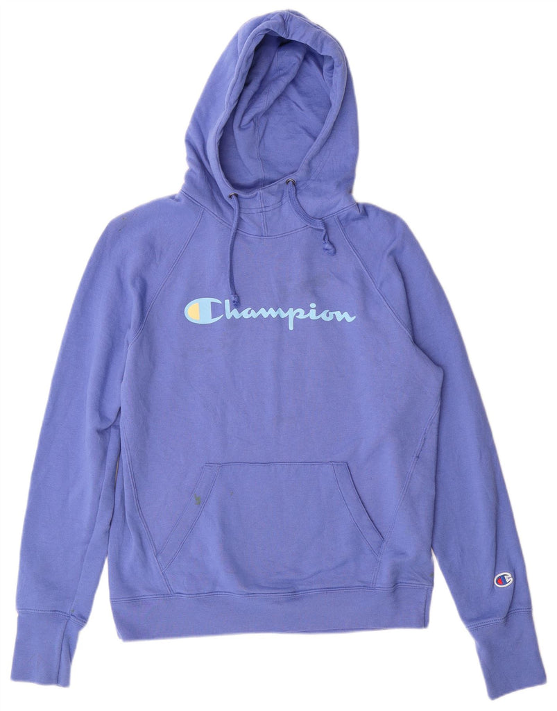 CHAMPION Womens Graphic Hoodie Jumper UK 10 Small Blue Polyester