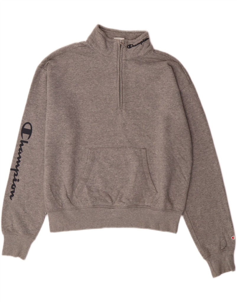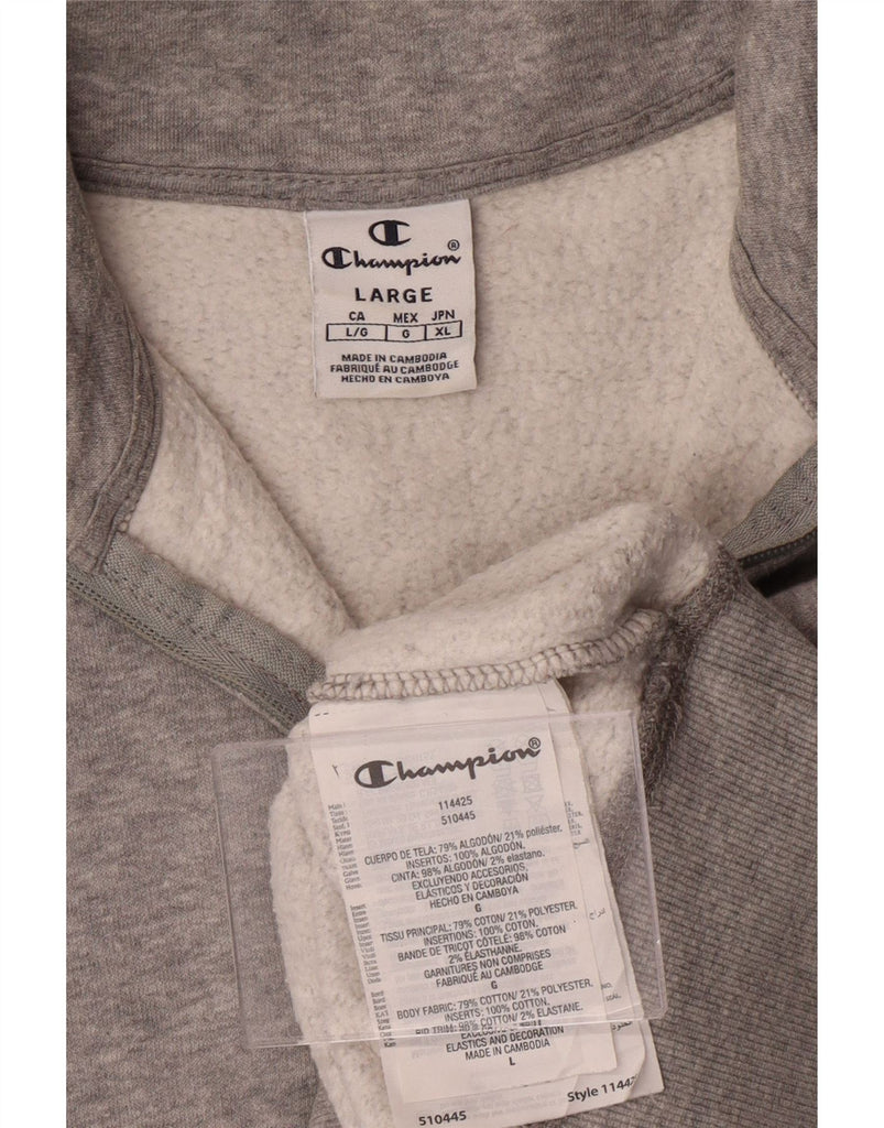 CHAMPION Womens Graphic Zip Neck Sweatshirt Jumper UK 16 Large Grey Cotton