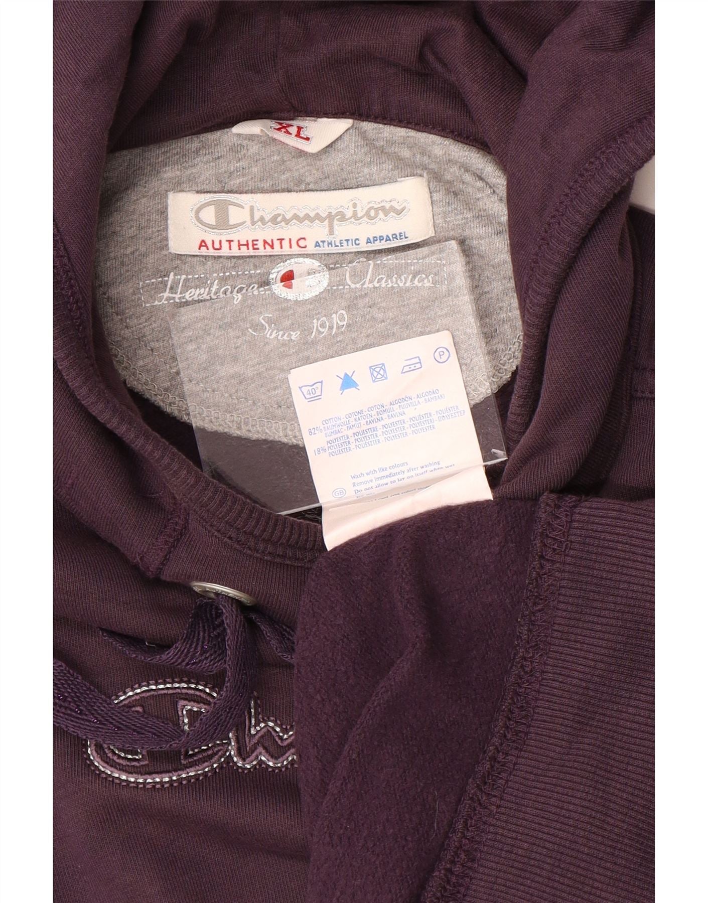CHAMPION Womens Heritage Classics Graphic Hoodie Jumper UK 18 XL Purple