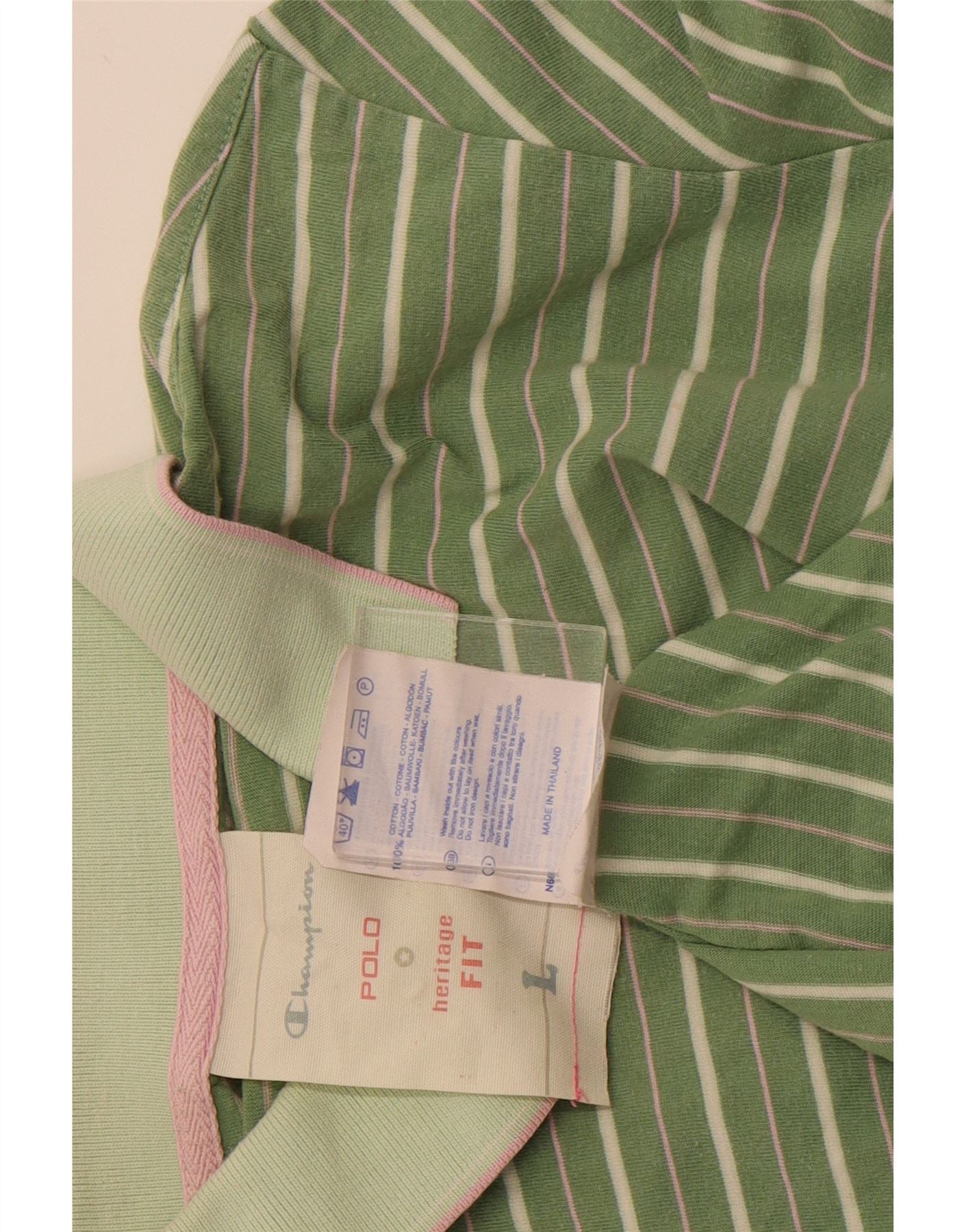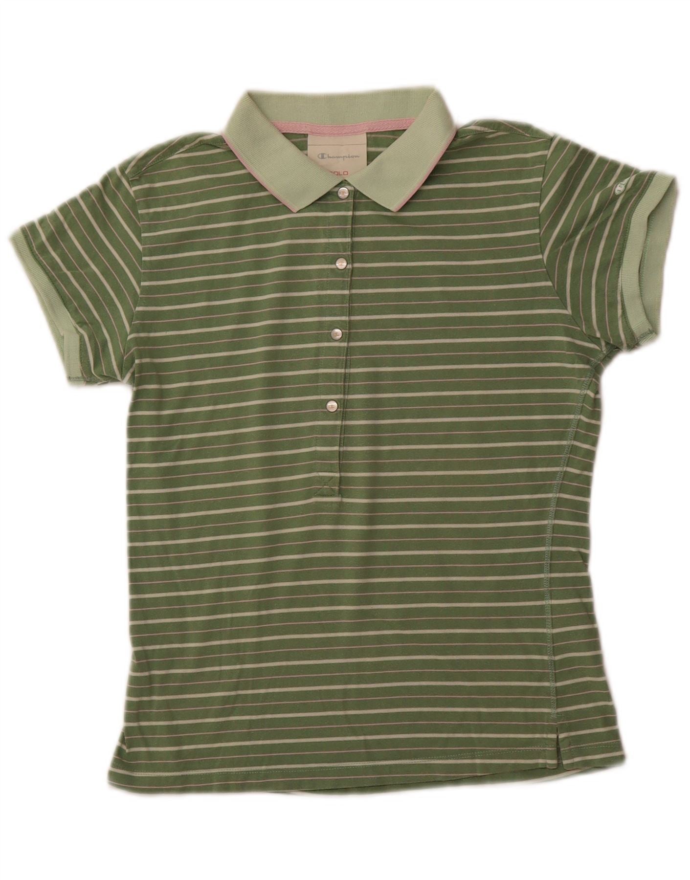 CHAMPION Womens Heritage Fit Polo Shirt UK 14 Large Green Striped Cotton