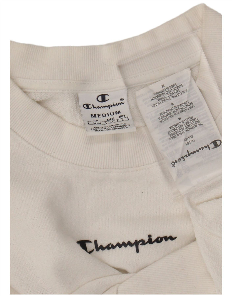 CHAMPION Womens Oversized Crop Sweatshirt Jumper UK 14 Medium White Cotton