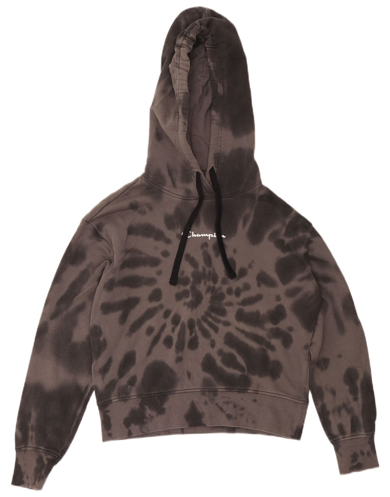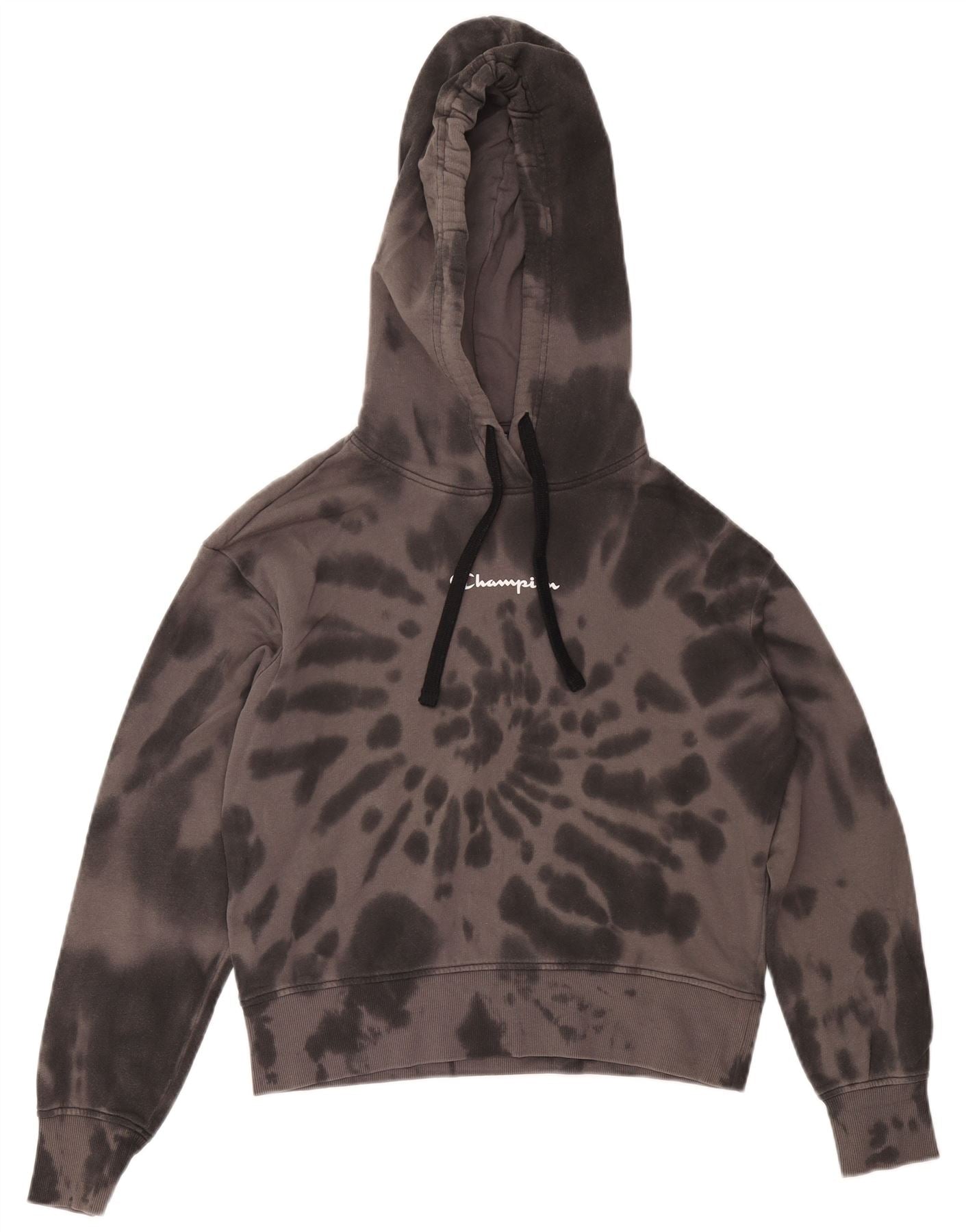 CHAMPION Womens Oversized Hoodie Jumper UK 10 Small Grey Tie Dye