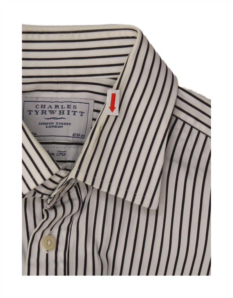 CHARLES TYRWHITT Mens Slim Fit Shirt Size 16 1/2 Large White Pinstripe