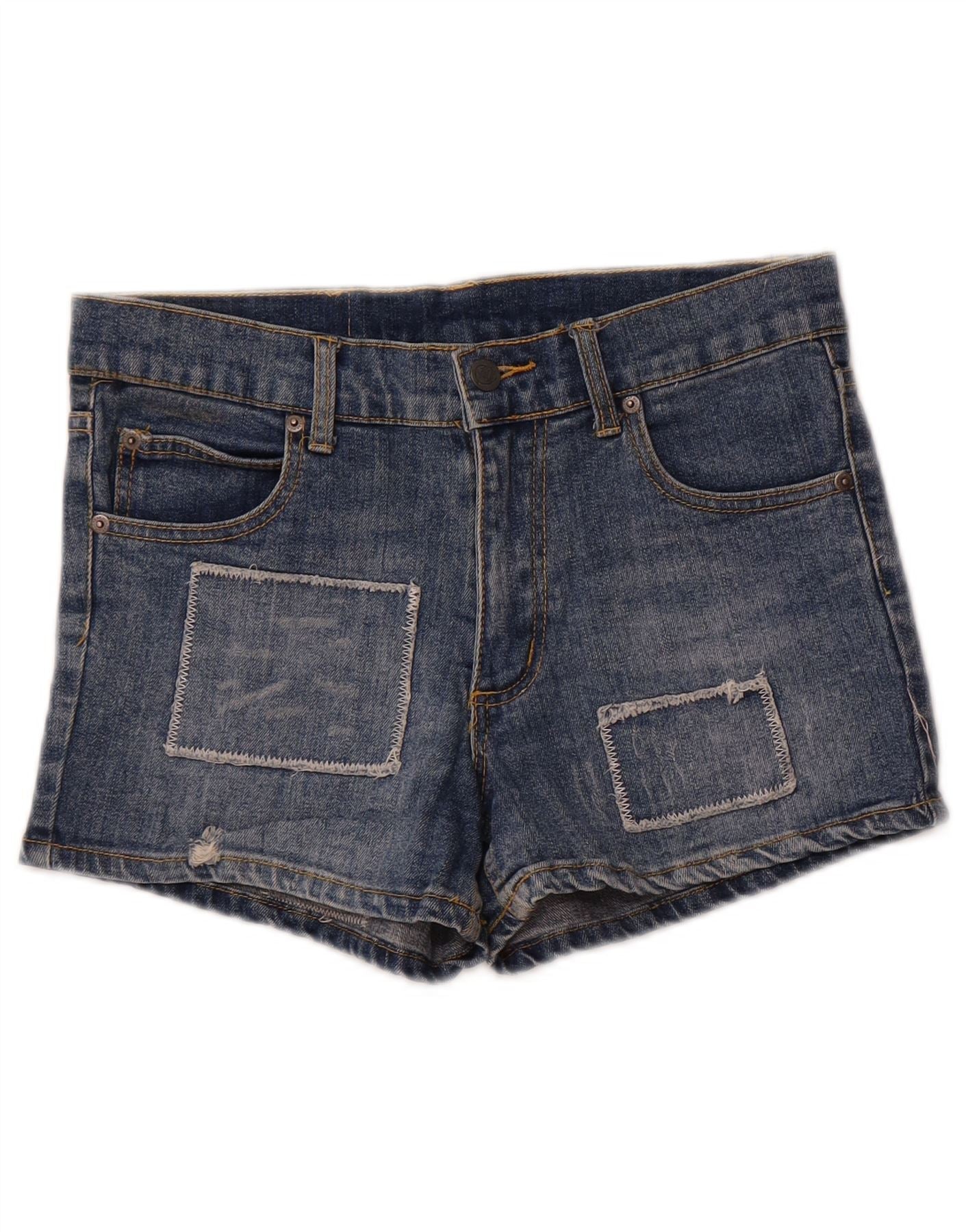 Pantaloni scurti din denim distressed pentru femei ieftini luni W29 Medium Blue Patchwork