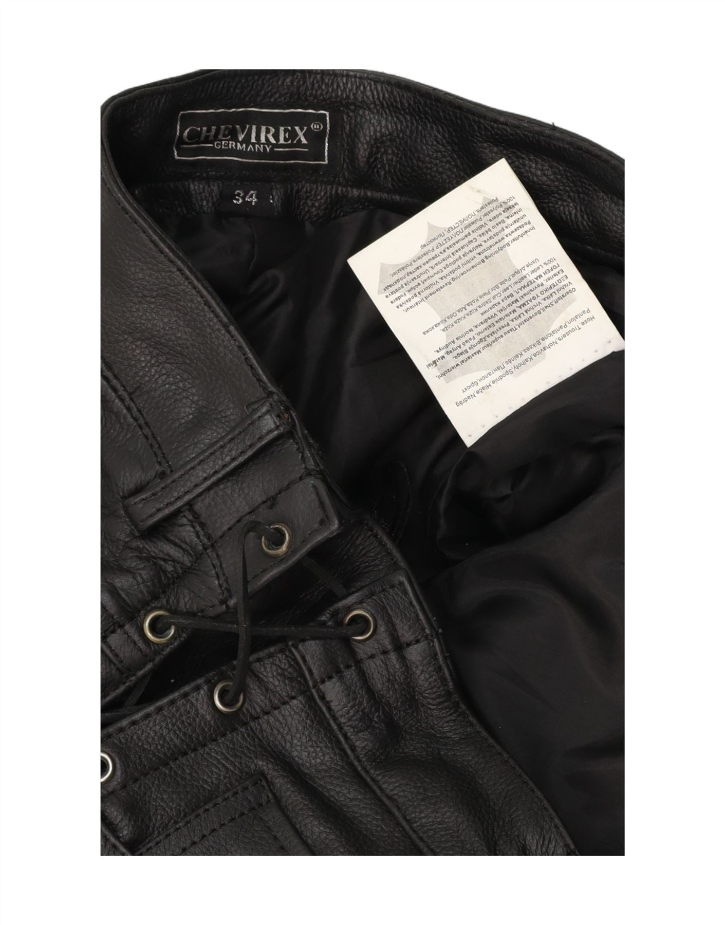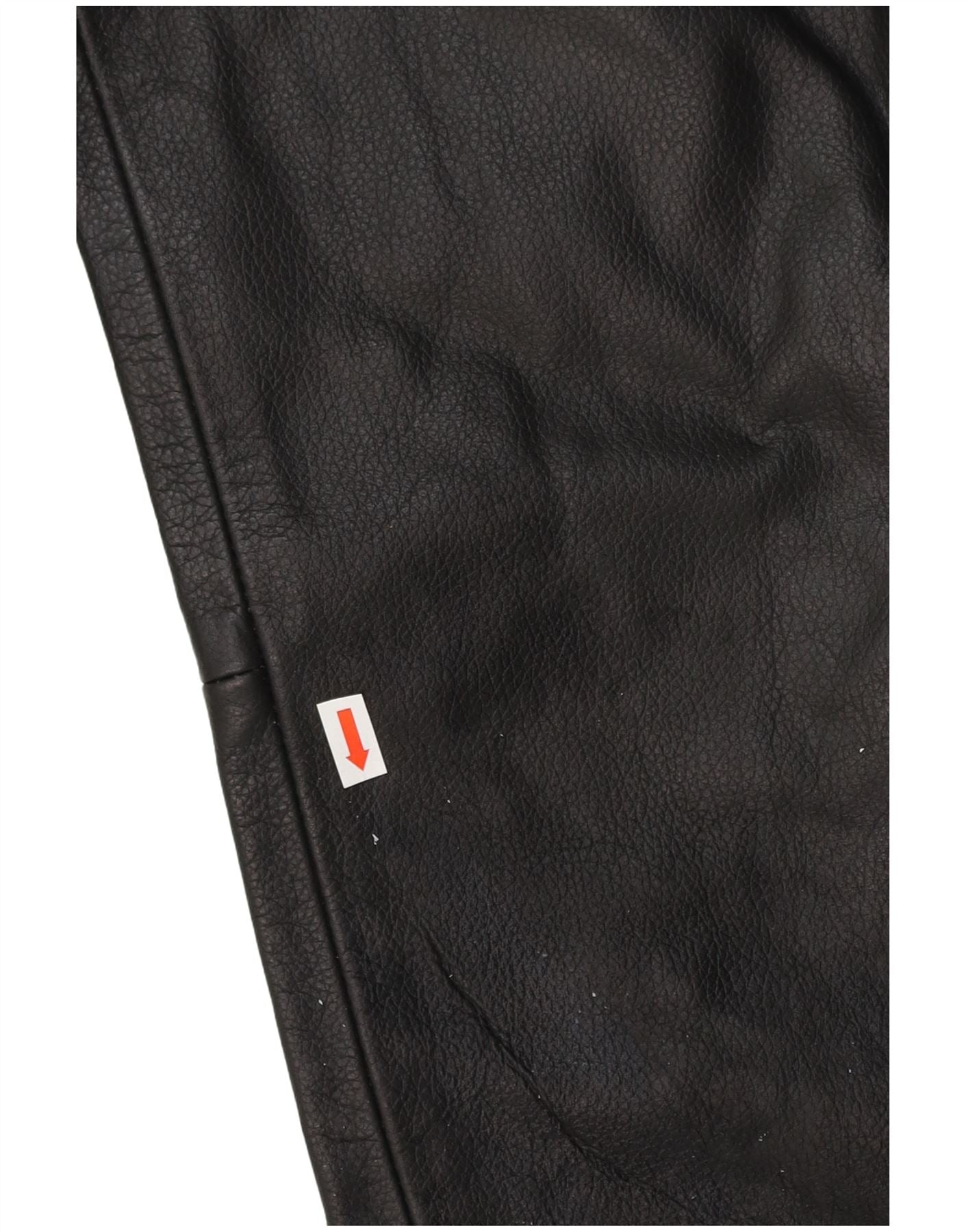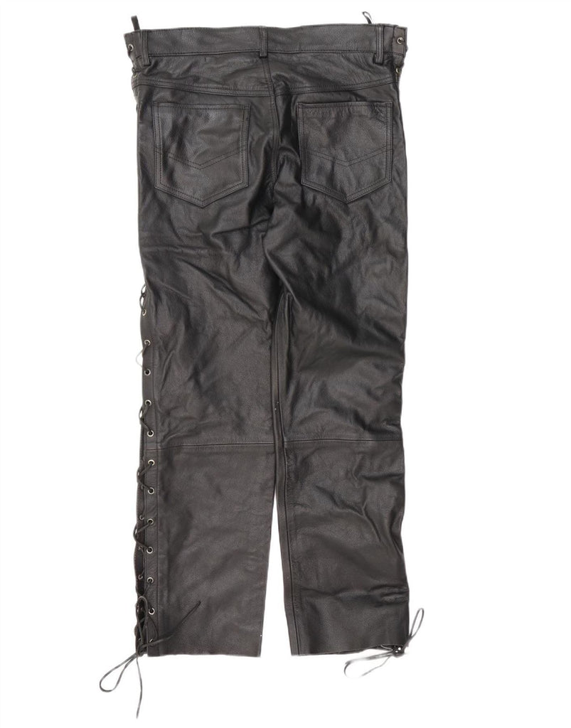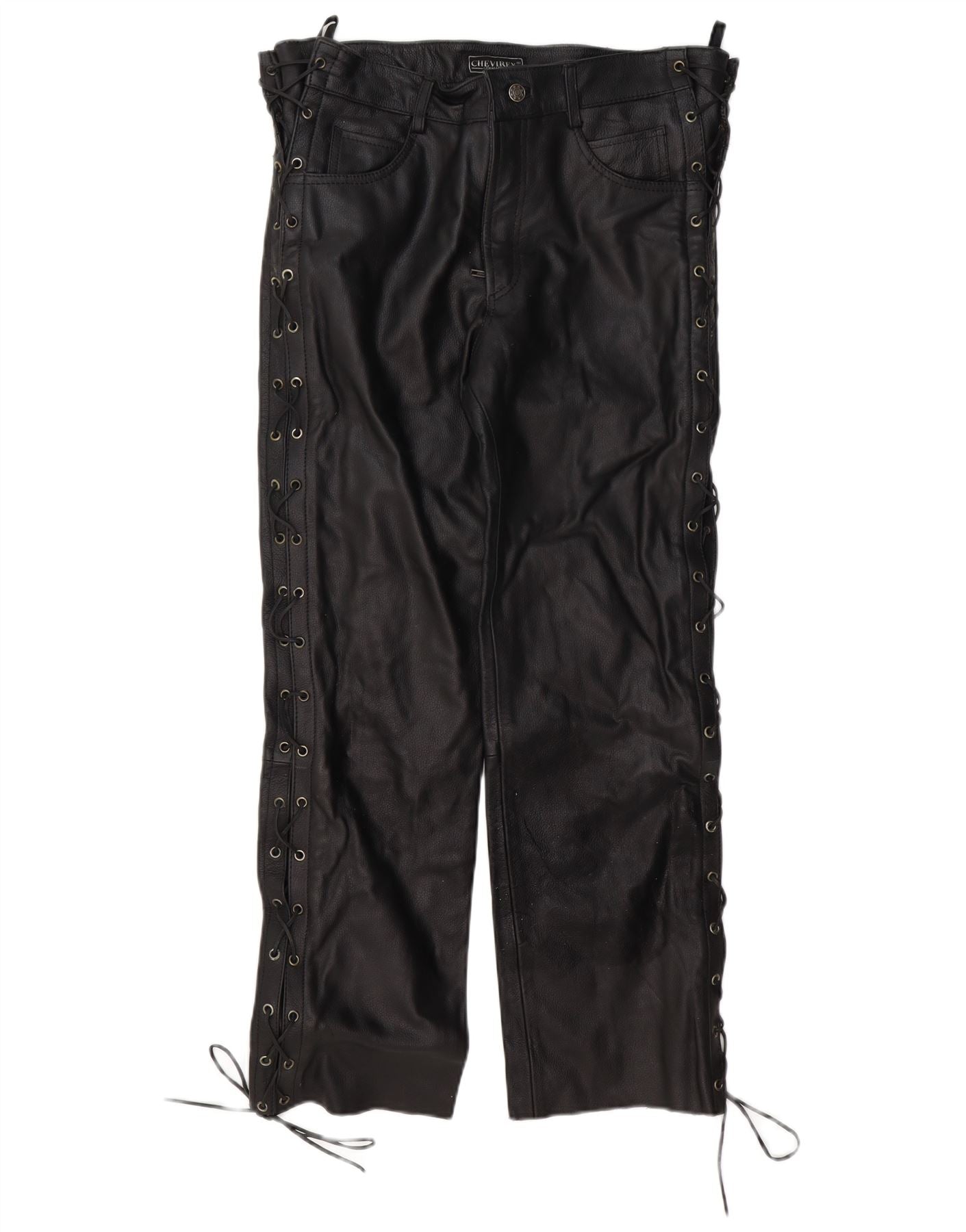 CHEVIREX Pantaloni drepti din piele pentru bărbați W34 L30 din piele neagră