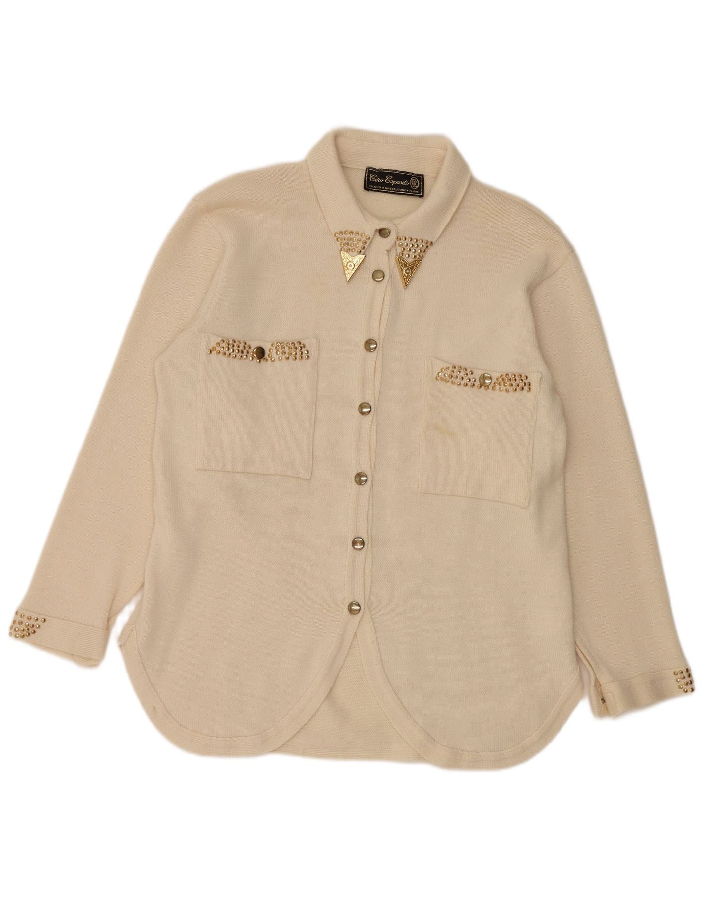 Bluză cămașă supradimensionată pentru femei VINTAGE UK 14 Medium Yellow Spotted