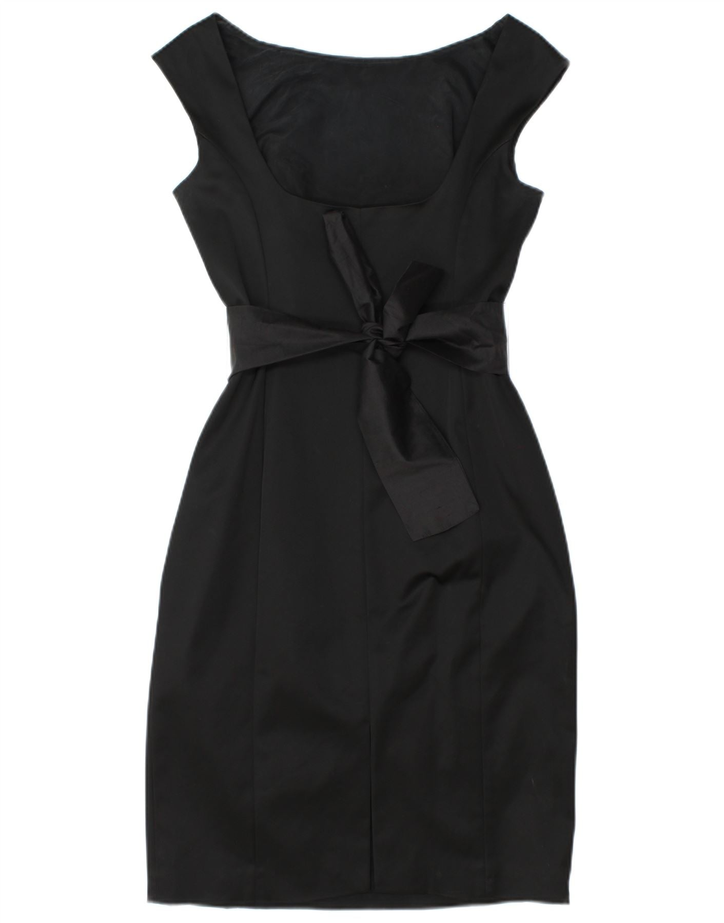 - Descriere AI: Această rochie teacă pentru femei Coast este prezentată într-o țesătură neagră clasică. Are un gât rotund și un design elegant fără mâneci. Silueta slim fit este strânsă elegant de o talie cu centură. O fundita delicata accentueaza talia, adaugand o nota rafinata. O inchidere discreta cu fermoar asigura un profil neted. Această rochie clasică oferă o croială sofisticată pentru un aspect lustruit.
