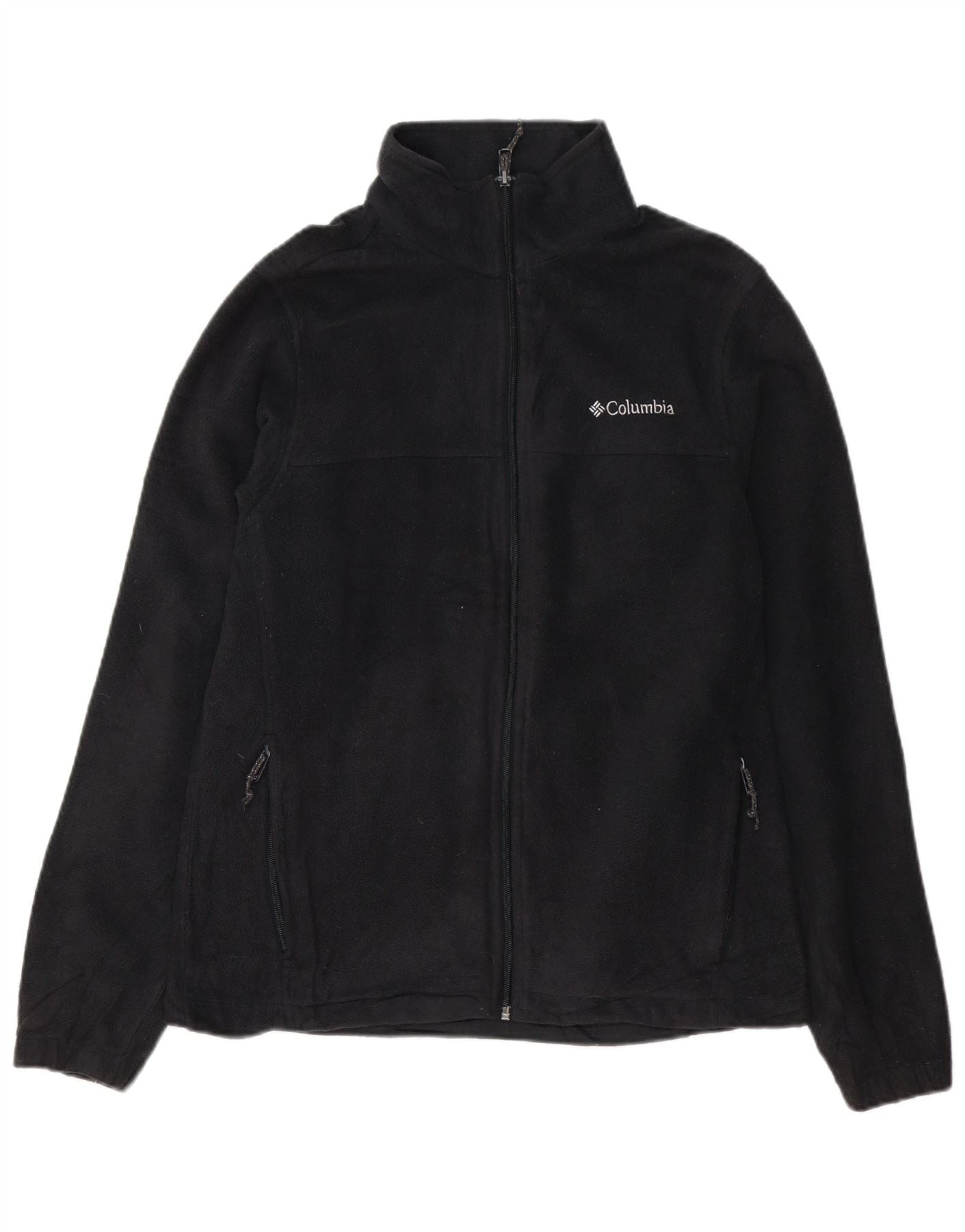 - AI Description: This Columbia mens Fleece Jacket is crafted from 100 percent polyester fleece in a classic black hue. It features a collared neckline and a full zip closure for versatile wear. Long sleeves and a regular fit ensure comfortable movement. Zipped pockets offer practical storage. The lightweight and breathable design is accented with a subtle brand logo, making it ideal for sports.