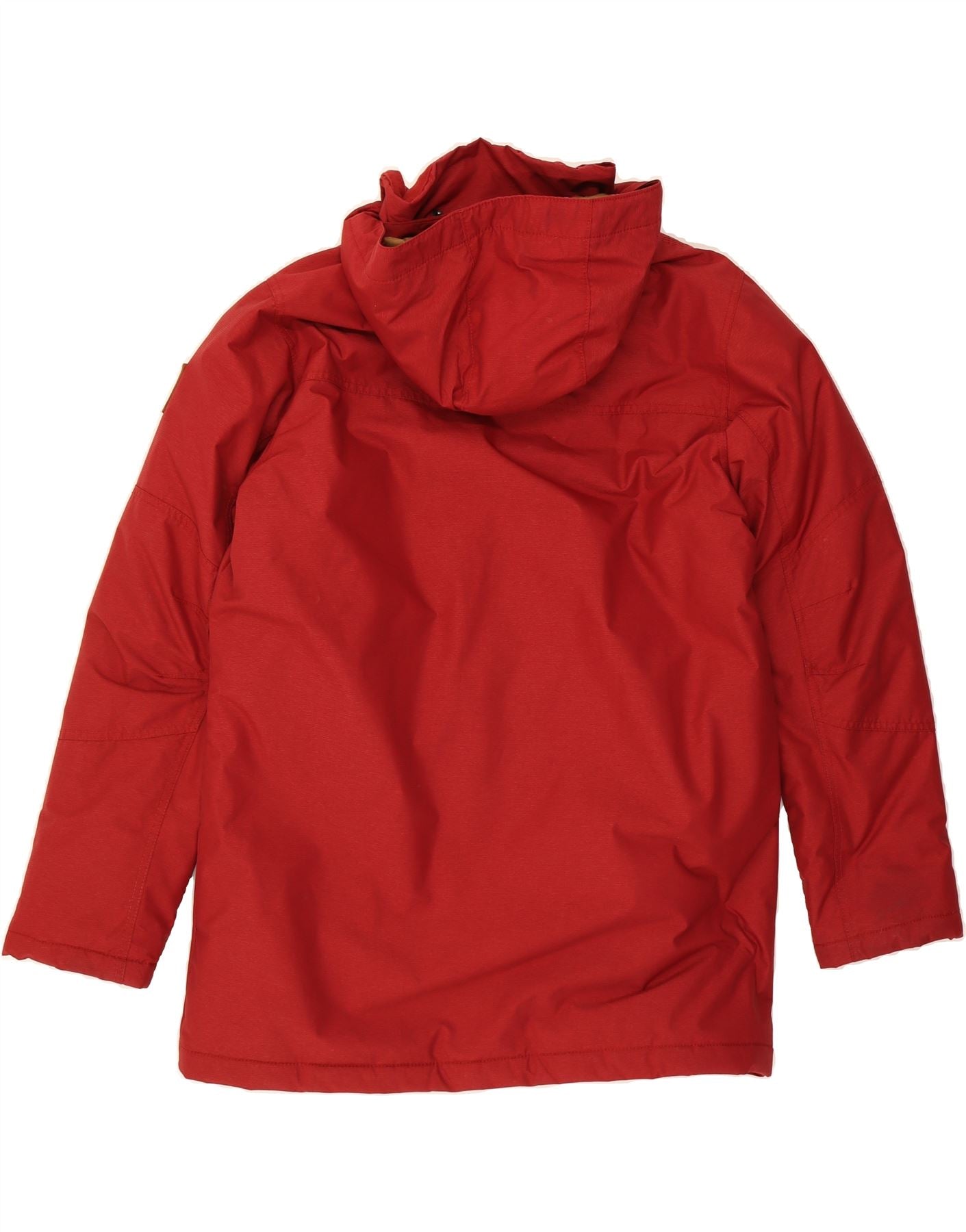 - AI Description: Stay warm and dry in this pre-owned Columbia parka jacket. Crafted in Vietnam, this red, woven jacket features a collared neckline, long sleeves, and a regular fit. The hooded design offers water resistance, with snap closures and adjustable features. Includes practical pockets. Minor visible wear overall and on the label. A classic style in excellent condition, perfect for everyday wear. Label size: L.