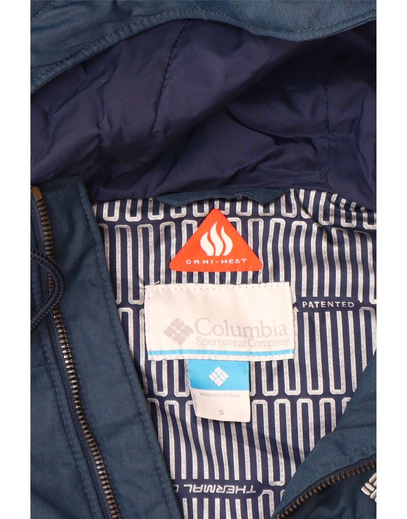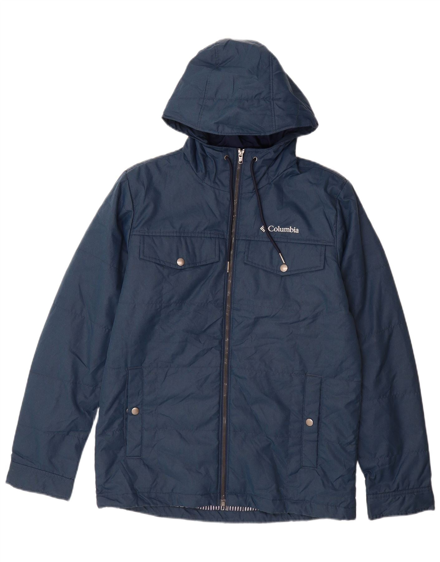 COLUMBIA Mens Omni-Heat Hooded Padded Jacket UK 36 Small Blue Polyester