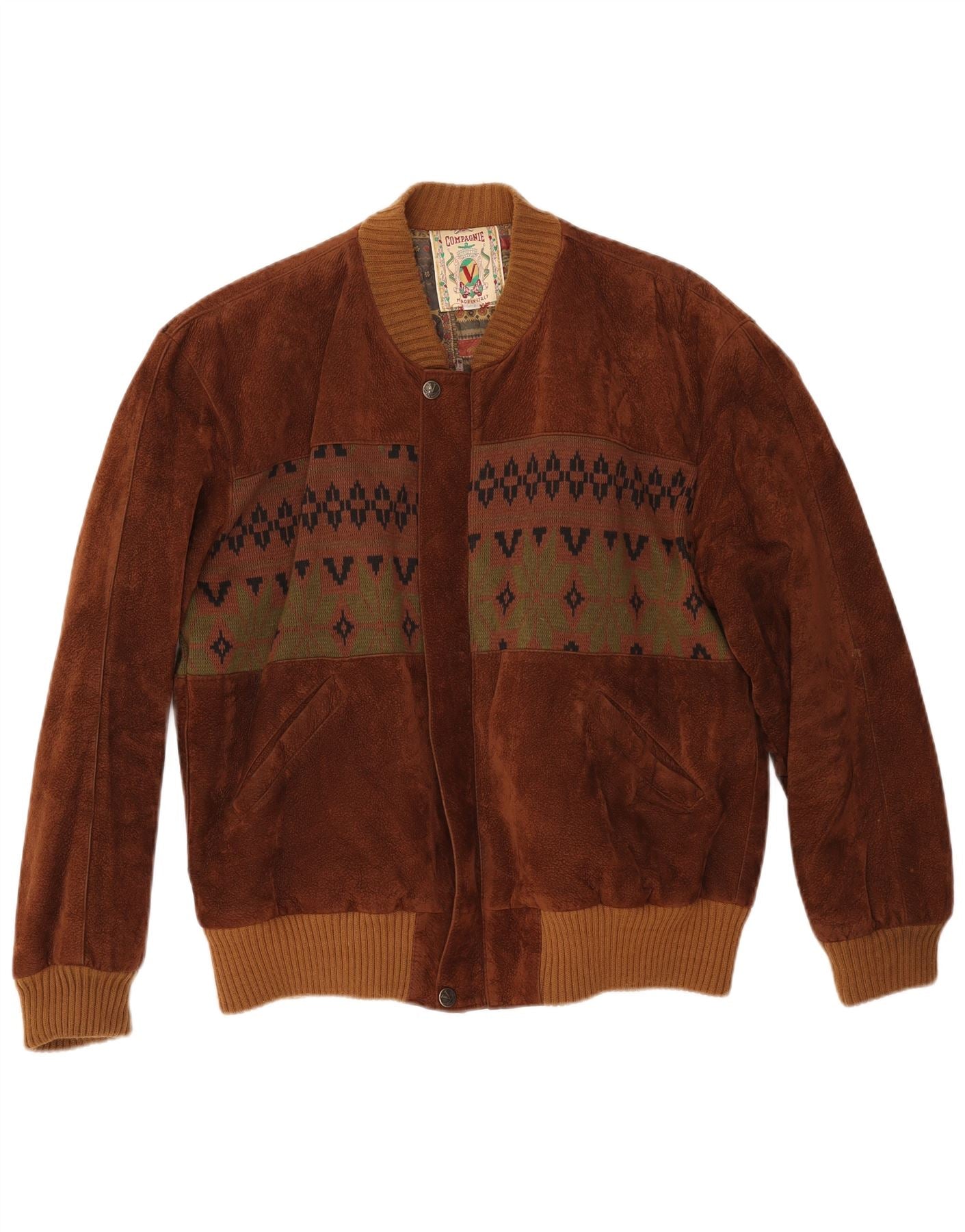 COMPAGNIE Jachetă Bomber de piele intoarsă pentru bărbați UK 38 Medium Brown Fair Isle