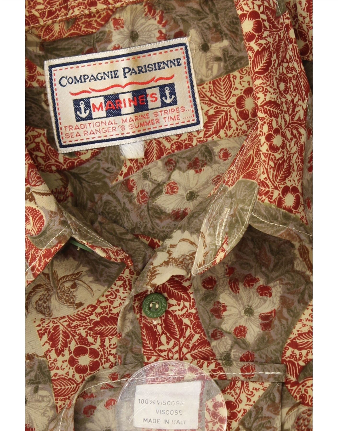 Cămașă cu mânecă scurtă pentru bărbați COMPAGNIE, mare kaki, viscoză florală