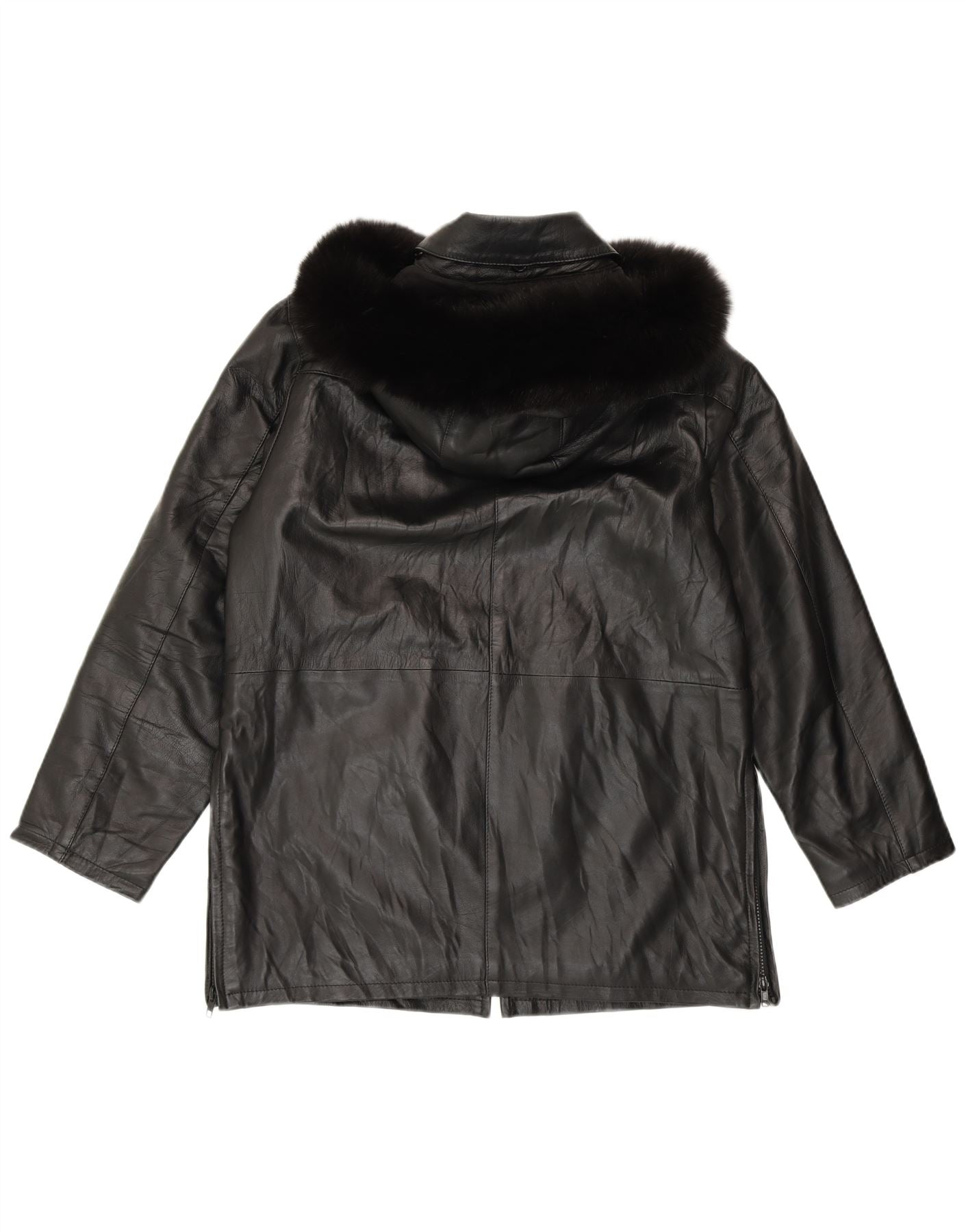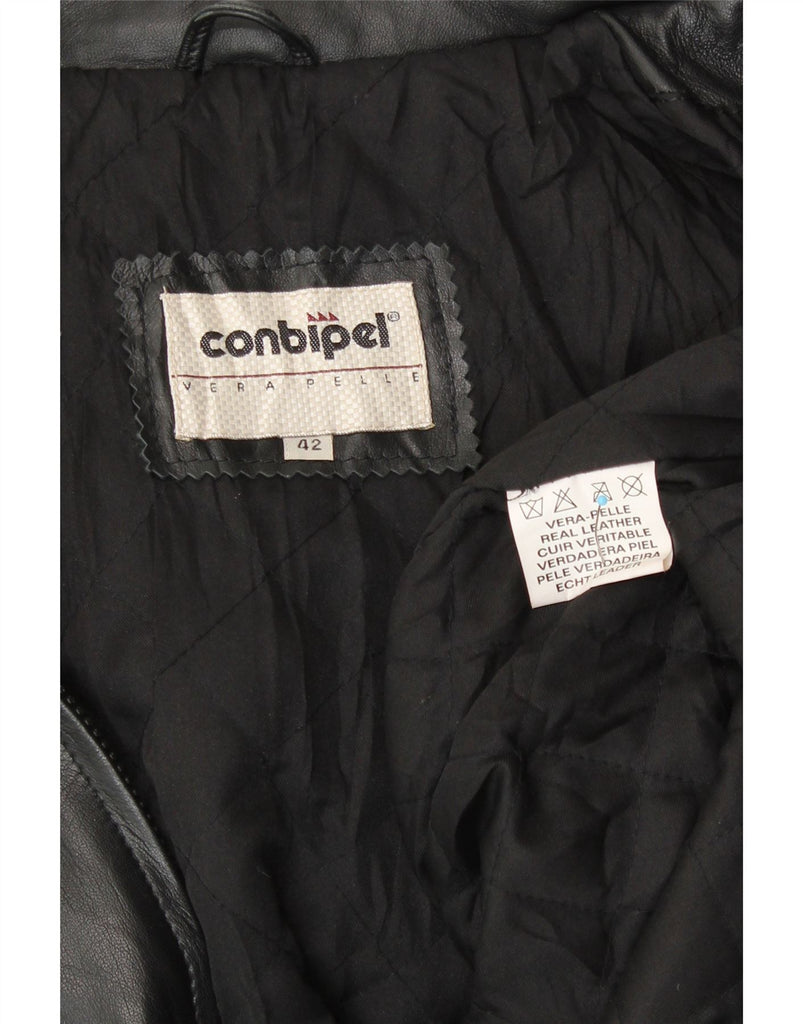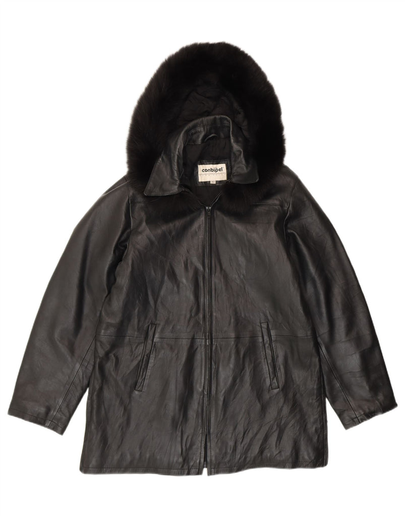 CONBIPEL Womens Hooded Leather Jacket IT 42 Medium Black Leather
