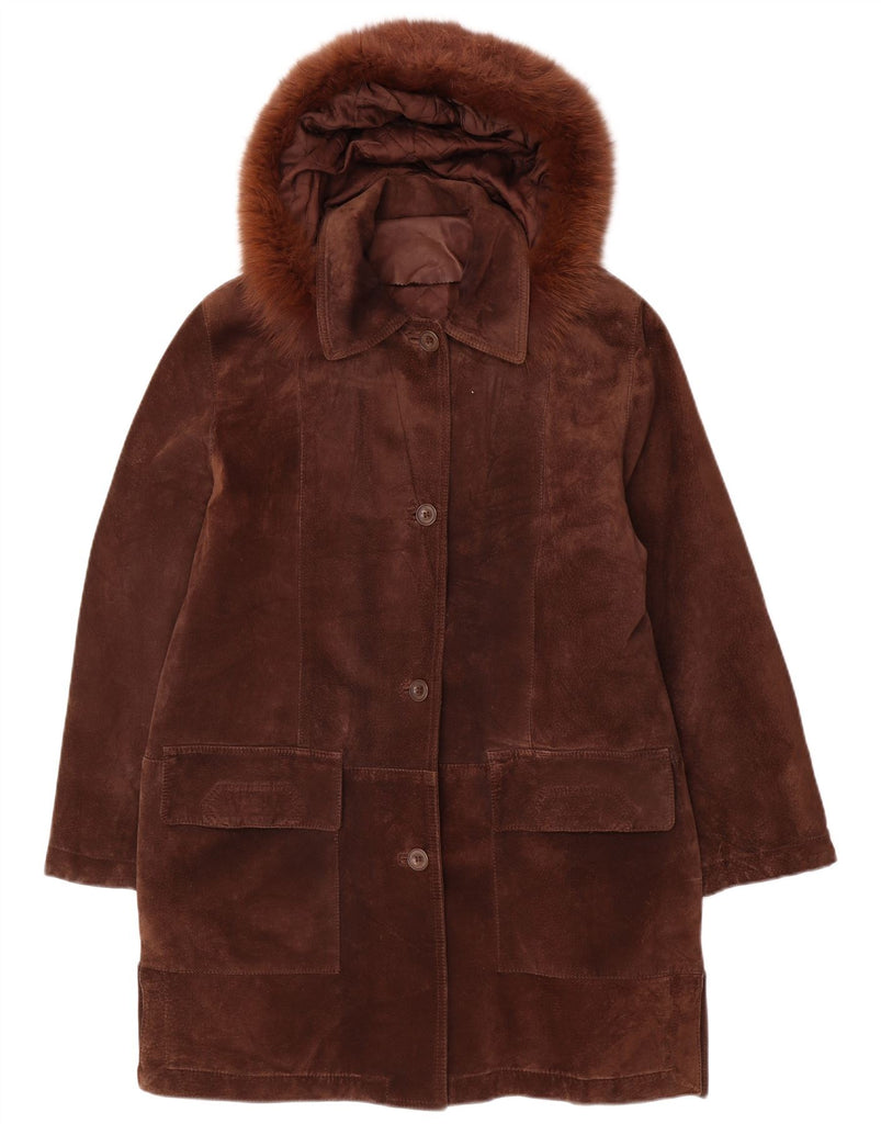 Palton pentru femei din piele intoarsa cu gluga CONBIPEL IT 42 piele maro medie