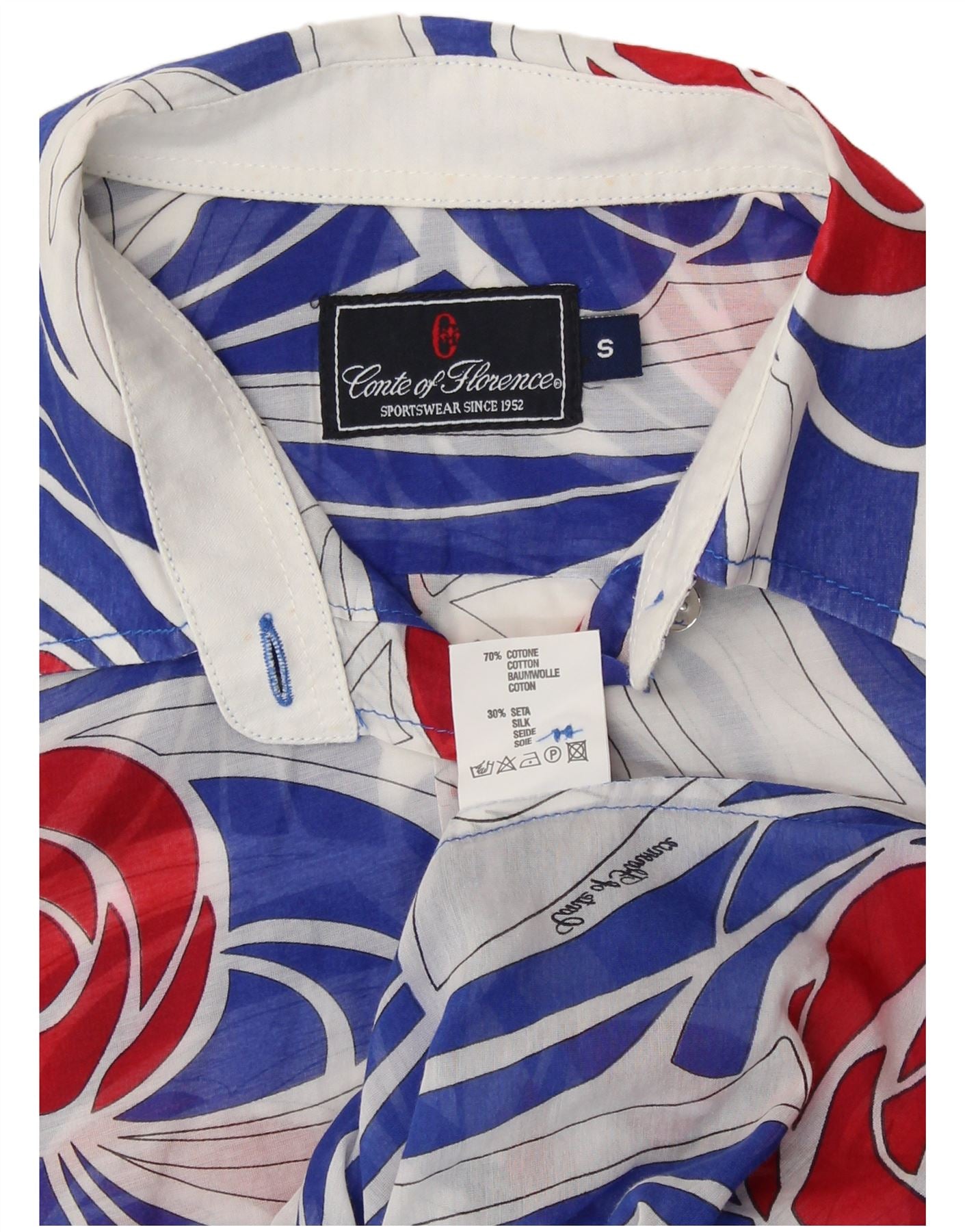 CONTE OF FLORENCE Womens See Through Shirt Blouse UK 10 Small Blue Floral
