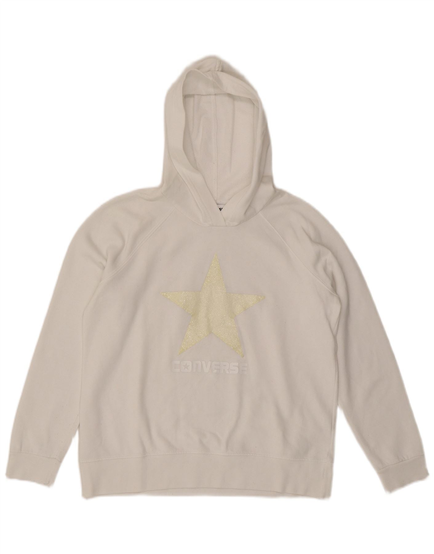 Pulover CONVERSE pentru damă, cu grafică, UK 14, bumbac alb mediu