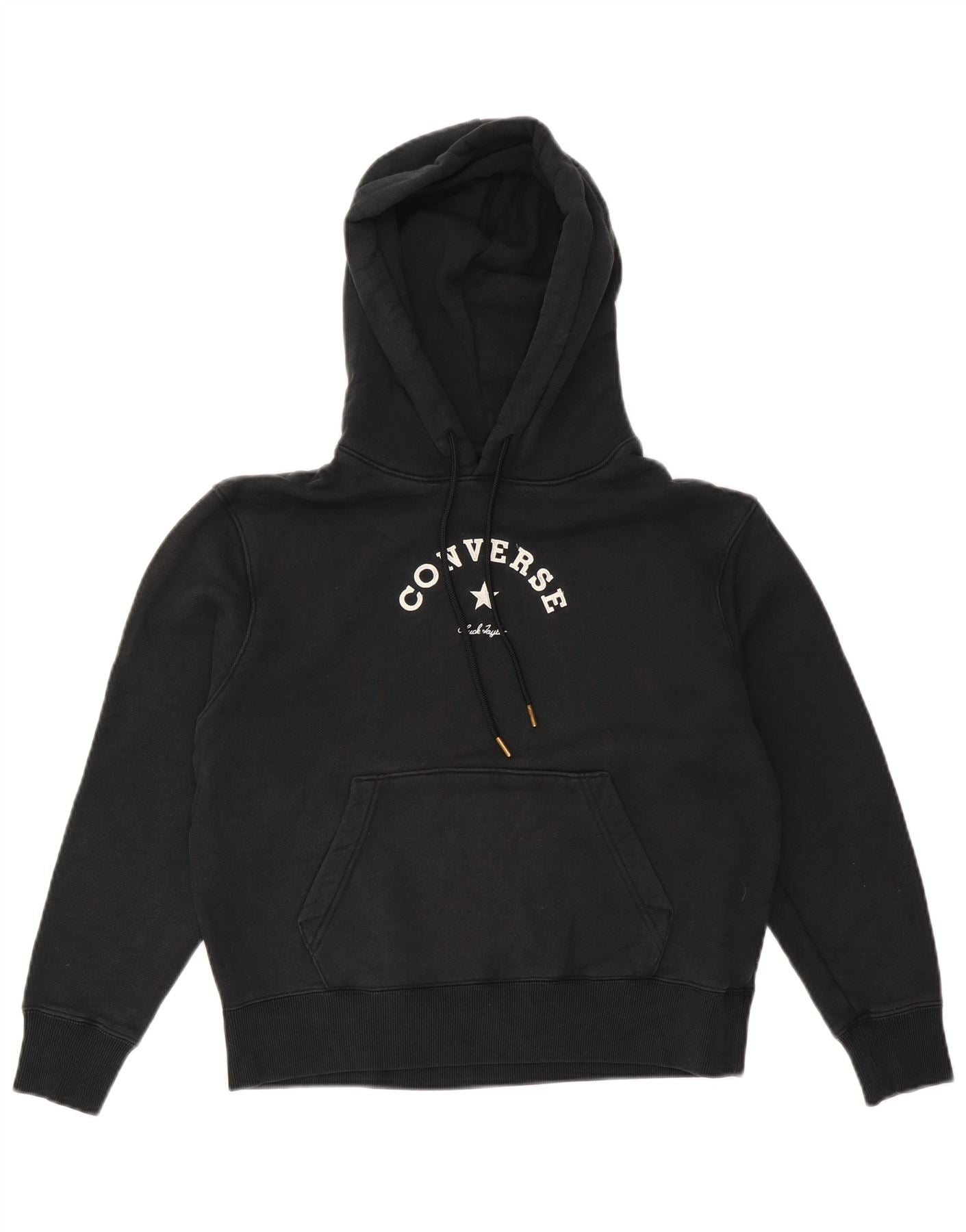 Pulover supradimensionat pentru damă CONVERSE cu capotă cu grafică UK 10 Bumbac negru mic