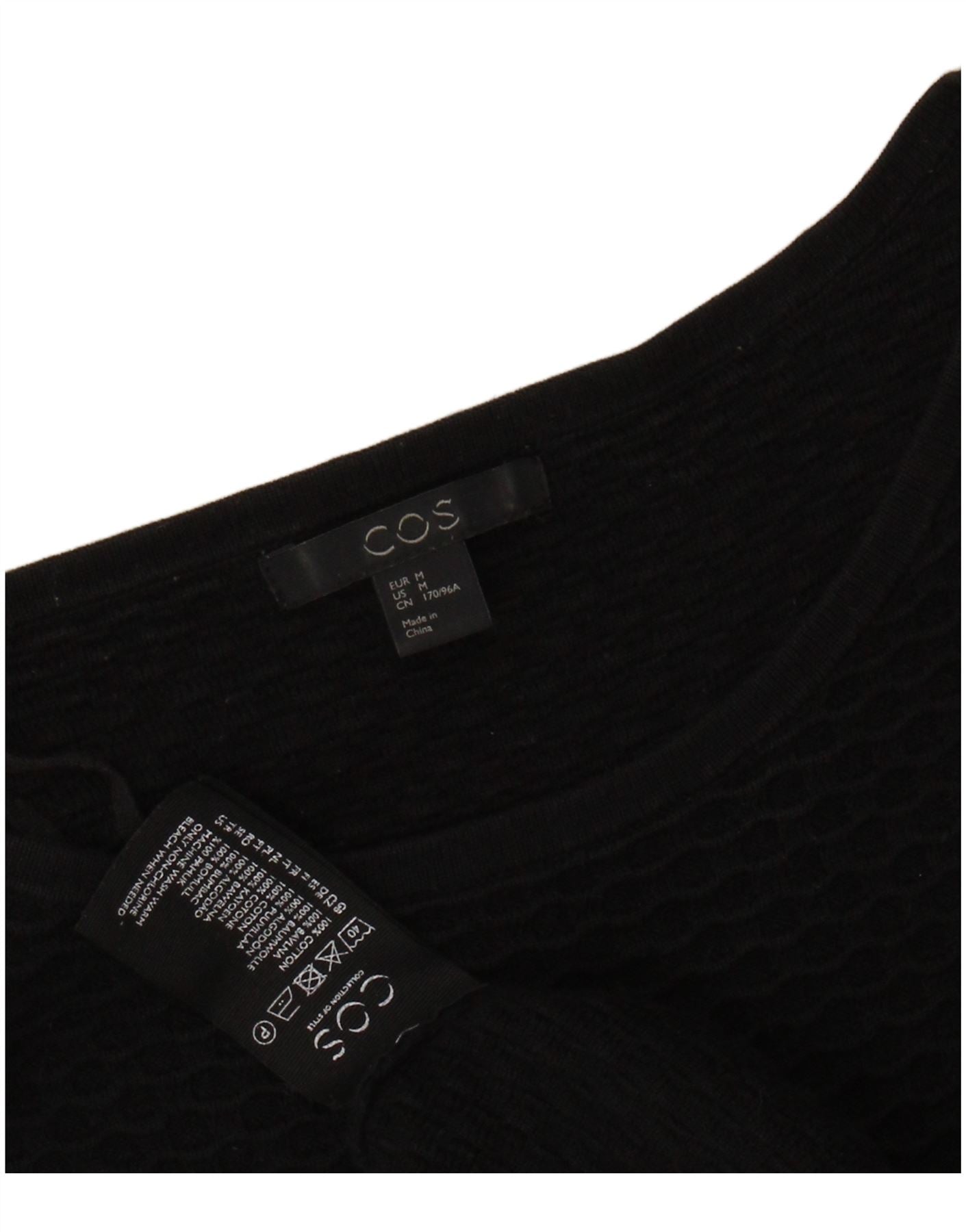 Top pentru femei COS mâneci 3/4 UK 14 mediu negru bumbac