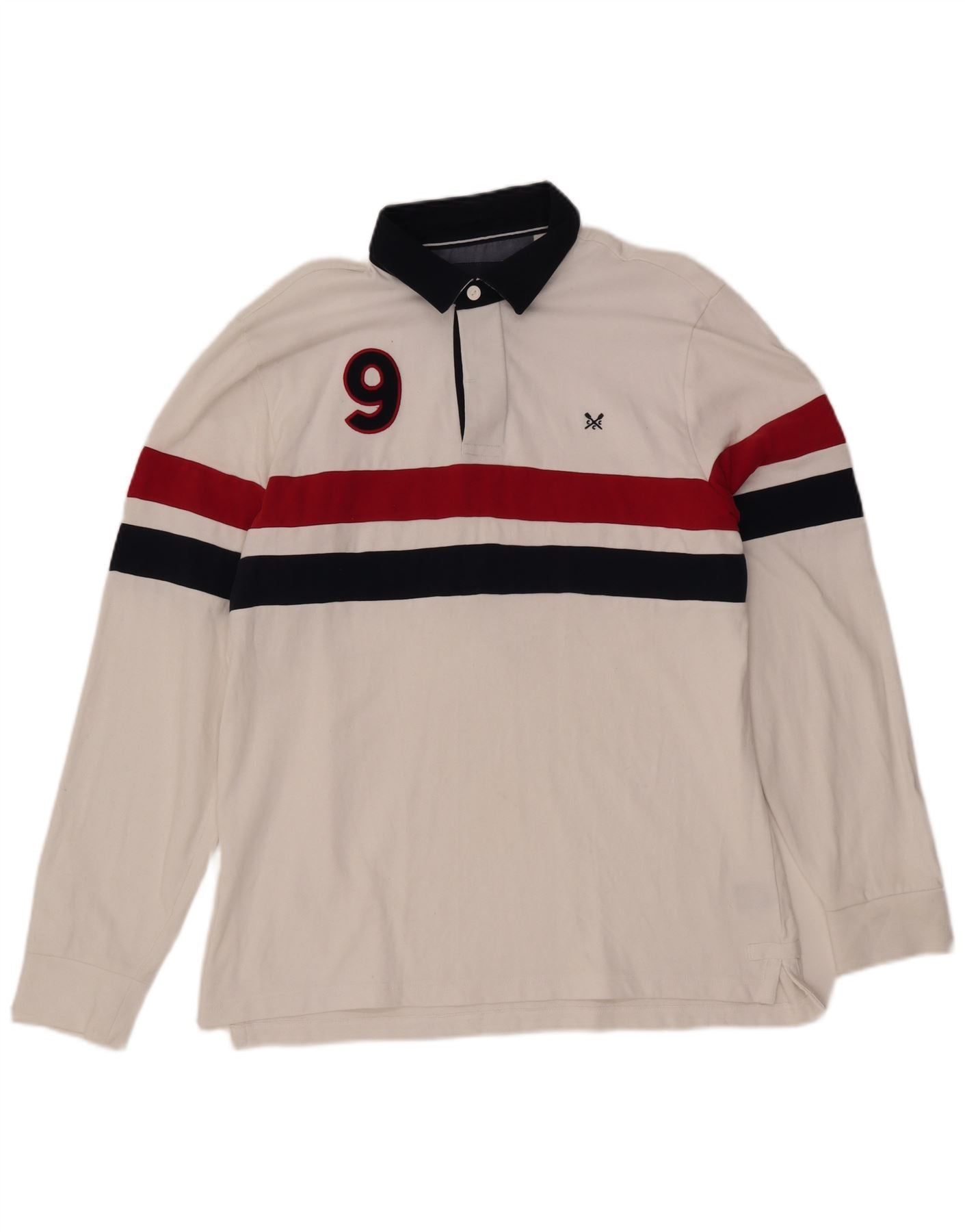 CREW CLOTHING Tricou polo grafic rugby pentru bărbați, mare, alb, bloc de culoare