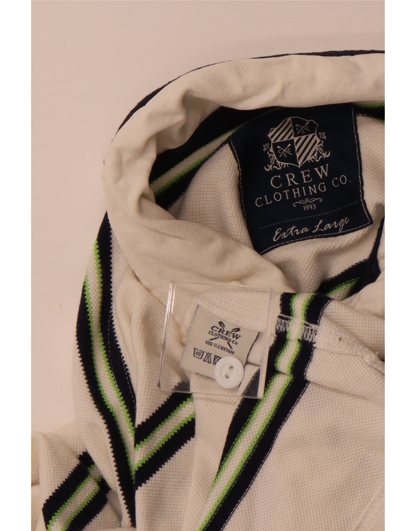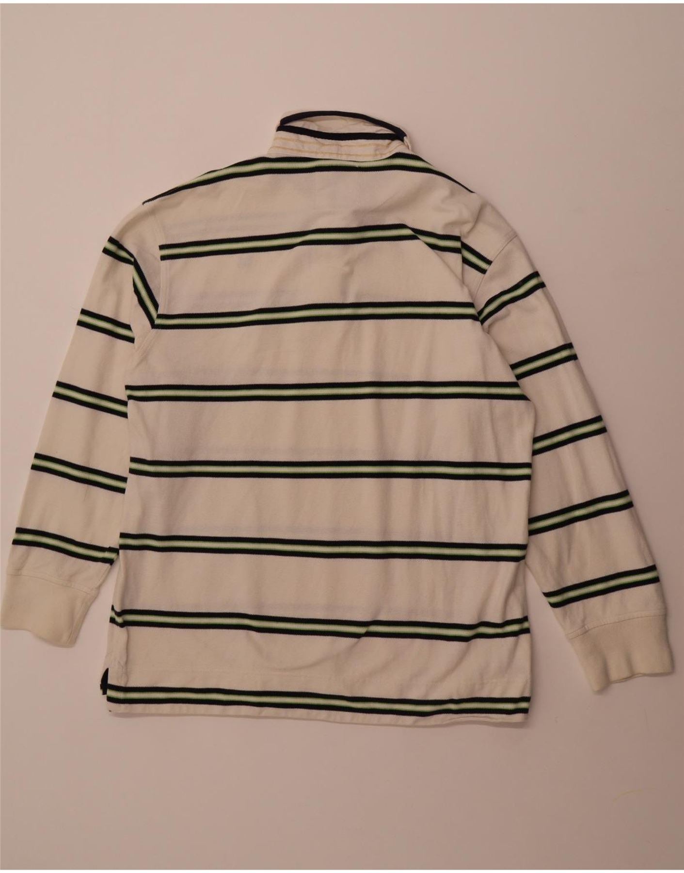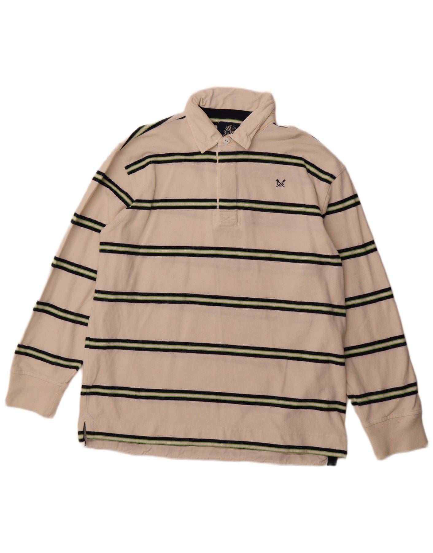 CREW CLOTHING Mens Long Sleeve Polo Shirt XL White Striped Cotton