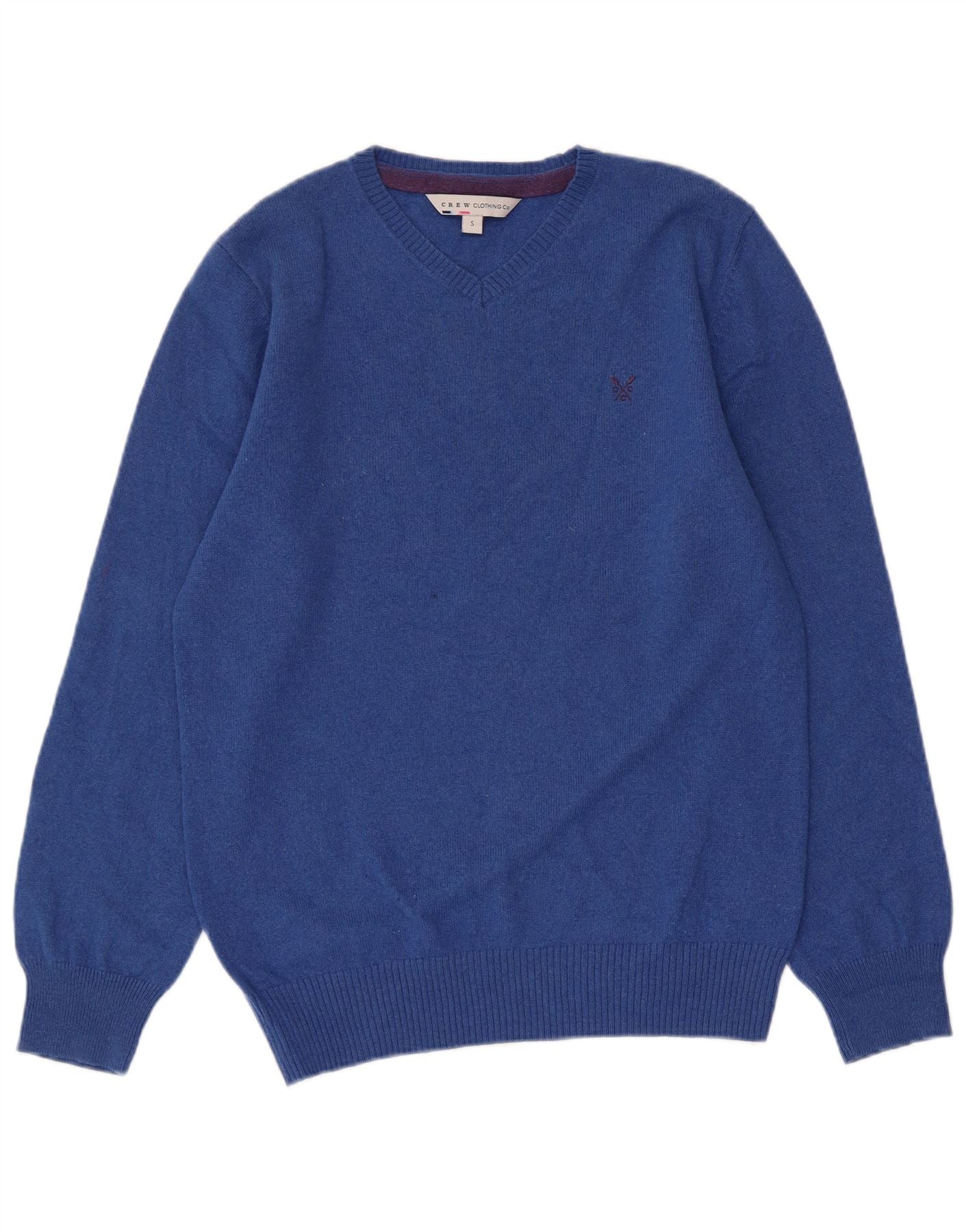 CREW CLOTHING Mens V-Neck Jumper Sweater Small Blue Cashmere