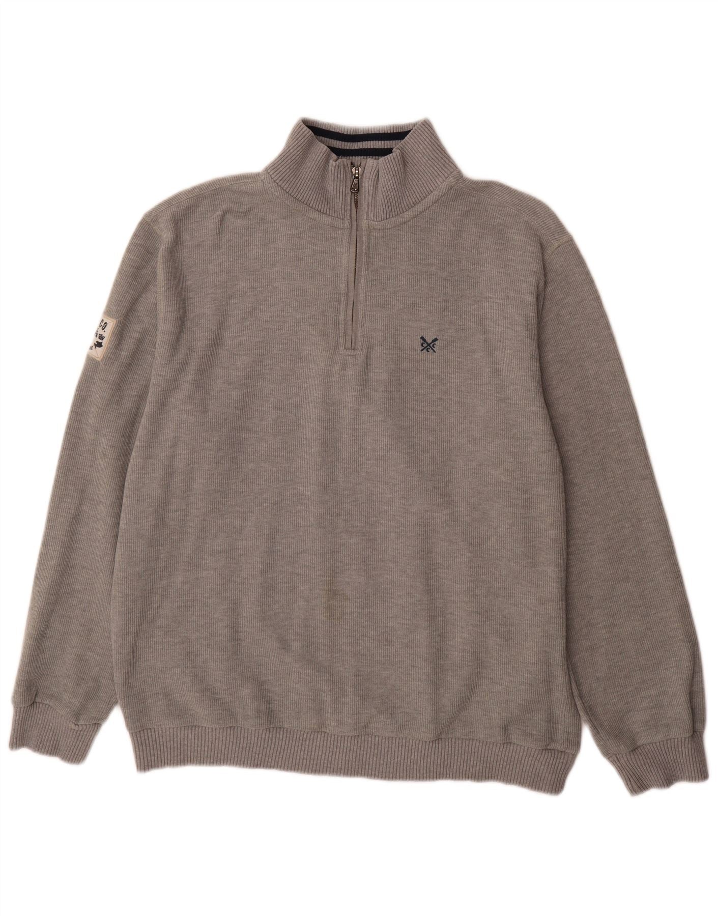 CREW CLOTHING Mens Zip Neck Sweatshirt Jumper 2XL Grey Cotton