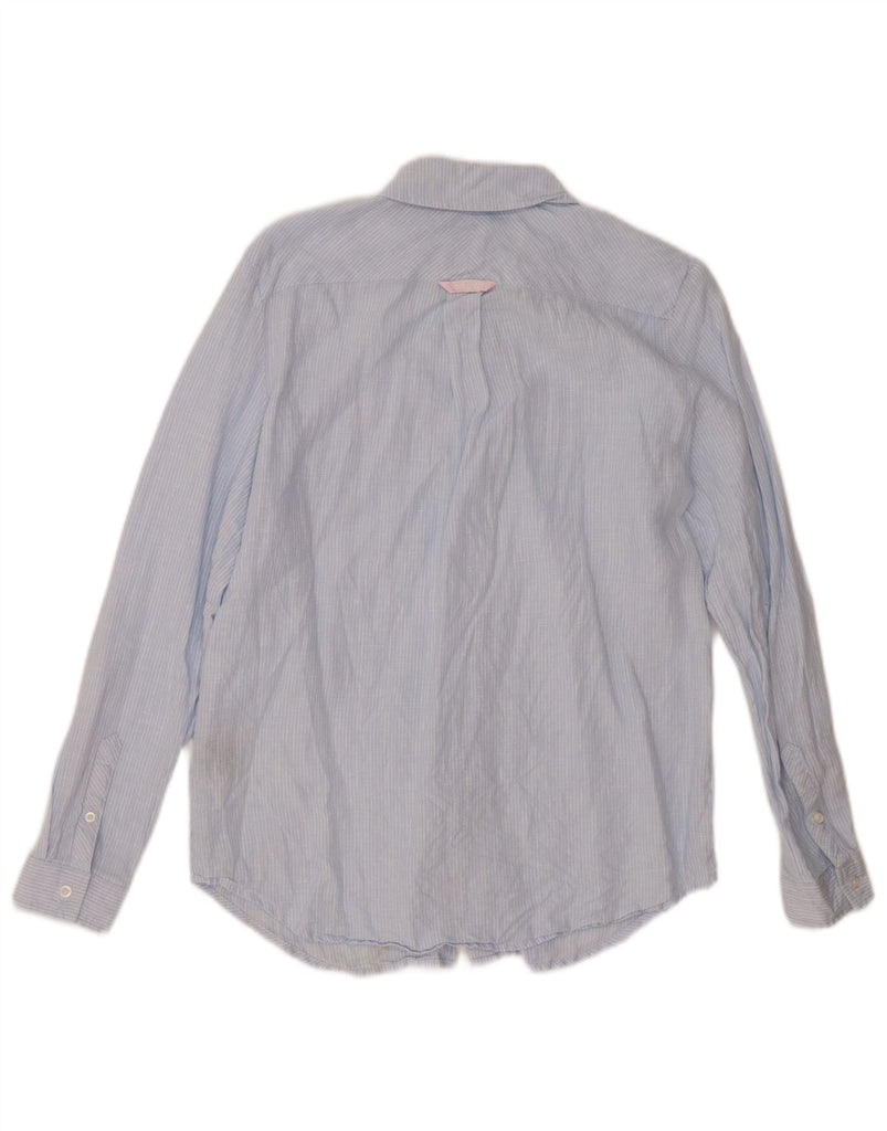 CREW CLOTHING Womens Relaxed Fit Shirt UK 10 Small Blue Pinstripe Linen